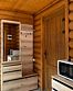 Двухместный дом — комфортабельный сруб, с двуспальной кроватью, а также тумбочкой, столом, стульями, телевизором, кондиционером, чайником, микроволновой печью. Ванная комната оборудована душем и санузлом, туалетные принадлежности.
