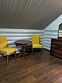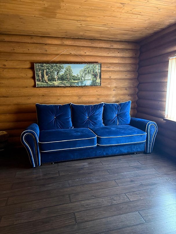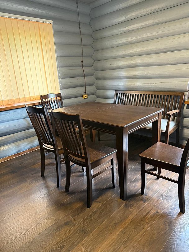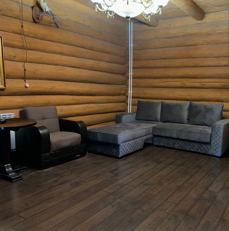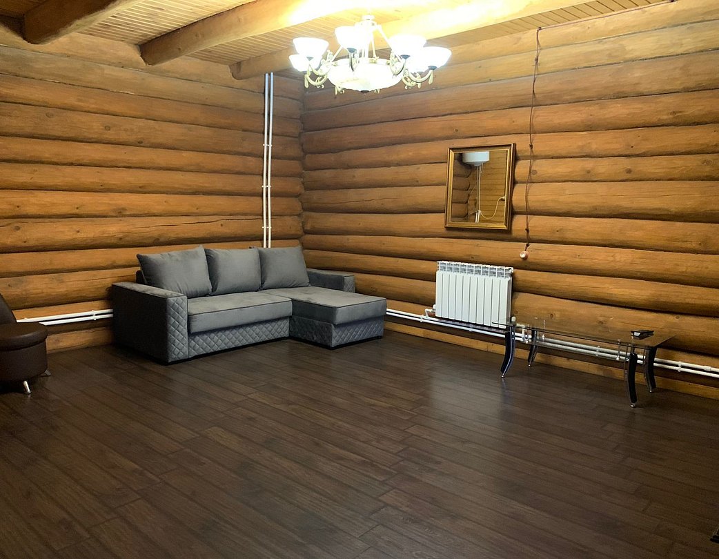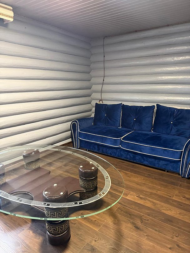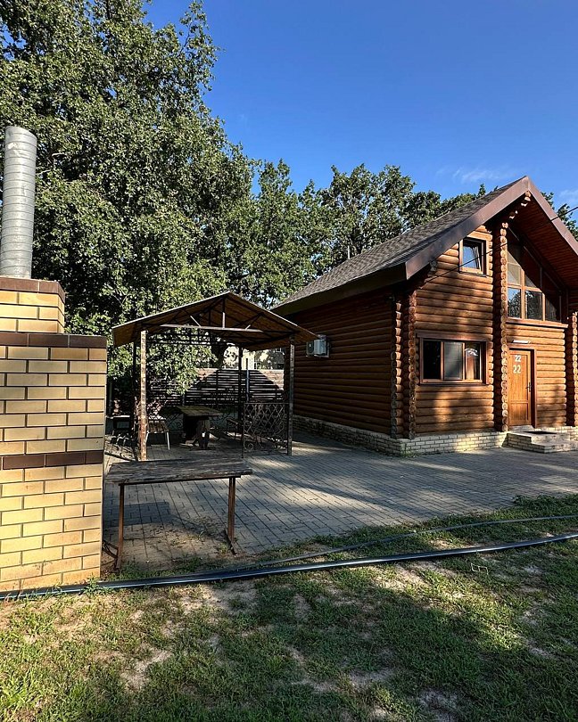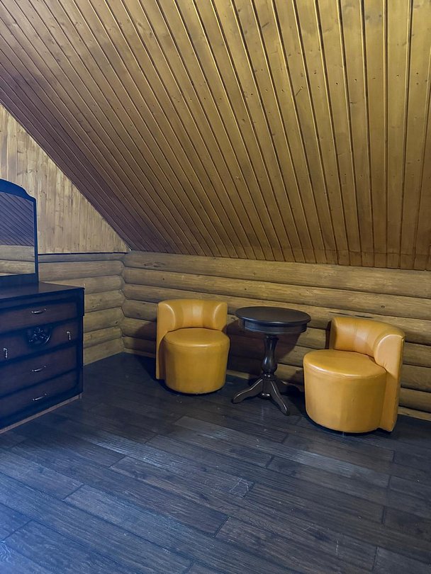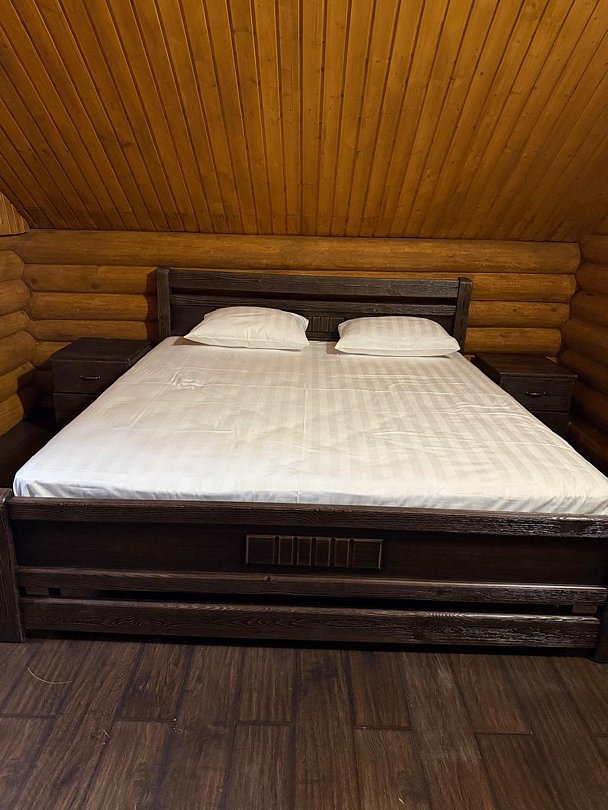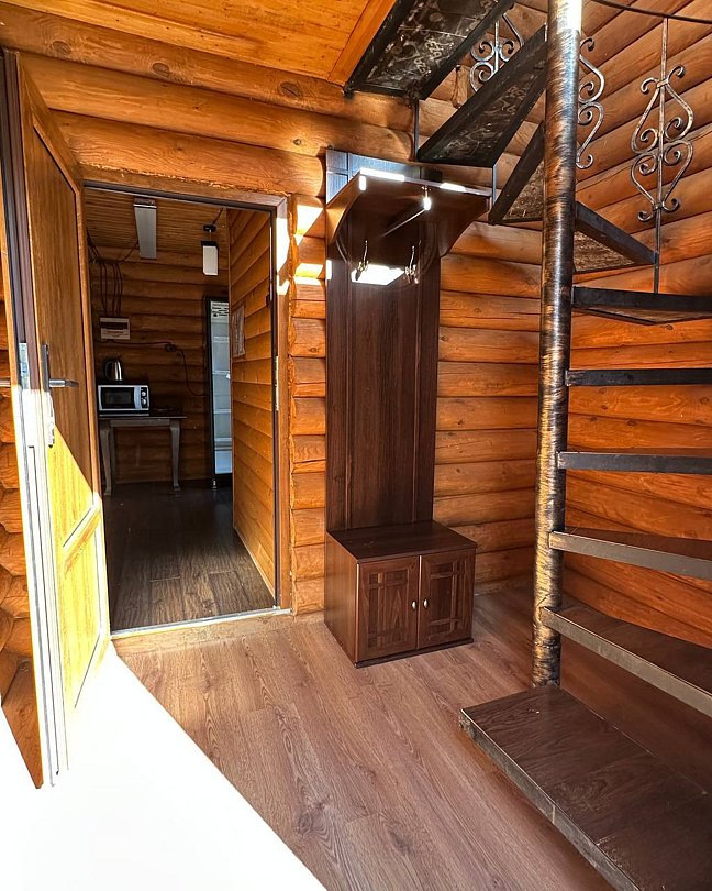 Двухэтажный благоустроенный коттедж (сруб) с общей вместимостью на шесть человек. На втором этаже расположены две большие спальни с двуспальными кроватями, а на первом этаже находятся кухонный гарнитур, стол, стулья, мягкая мебель, сплит-система, телевизор, чайник и микроволновая печь.