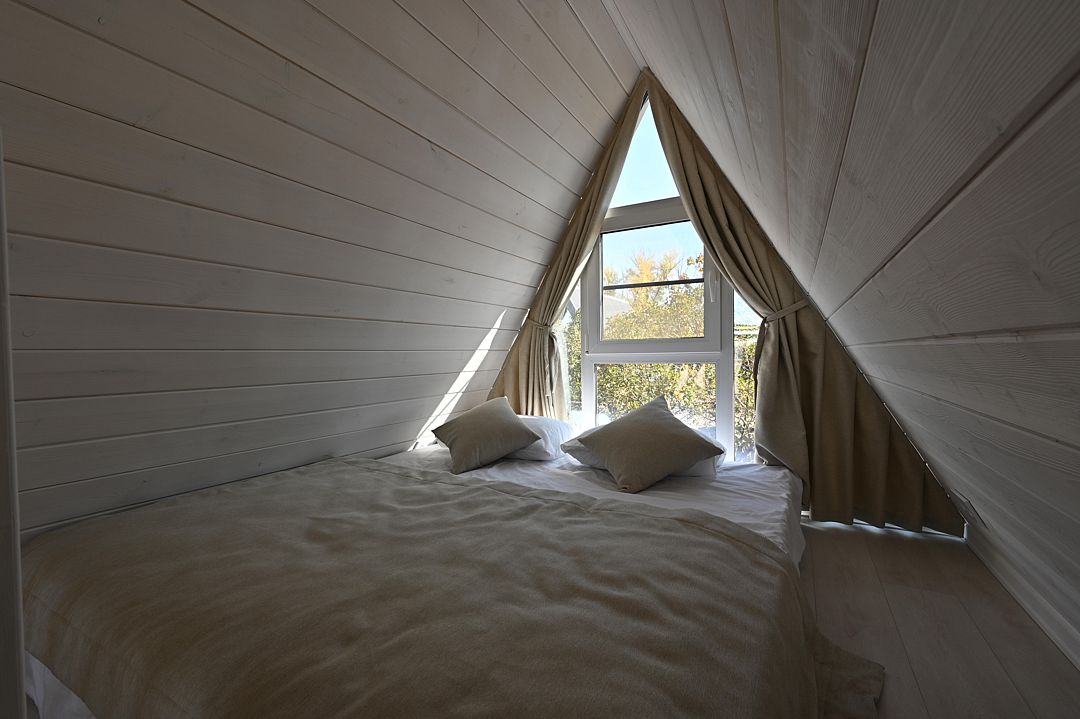 Одна двуспальная кровать, одна диван-кроватьВ а-фрейме