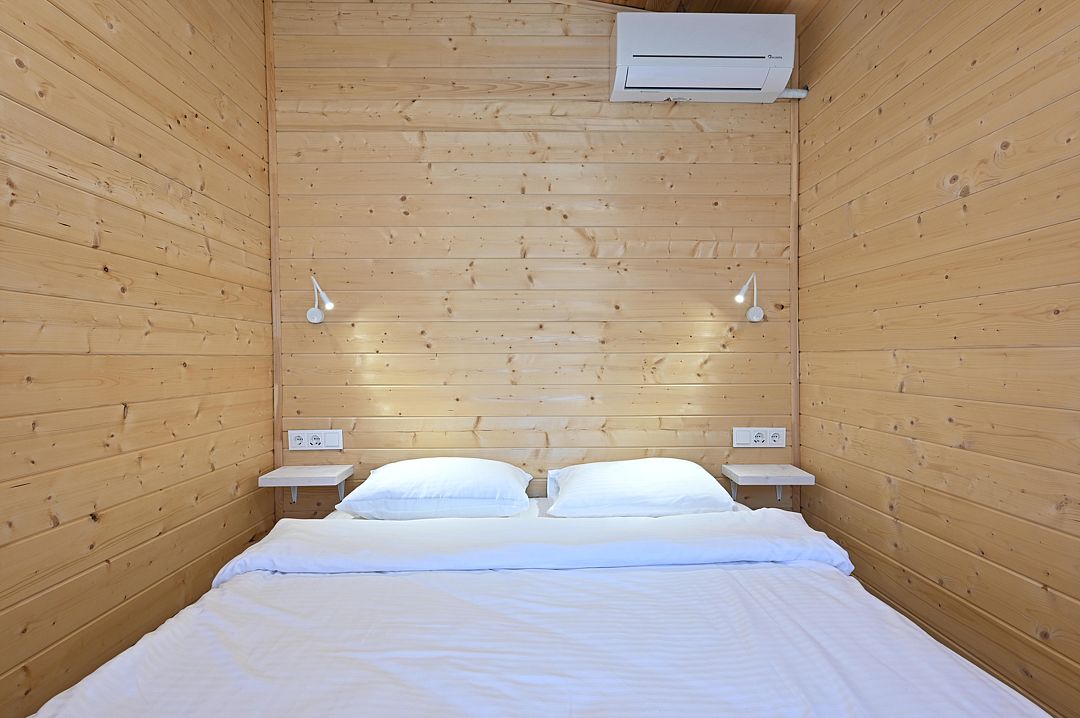Одна двуспальная кровать, одна диван-кроватьВ домике