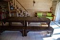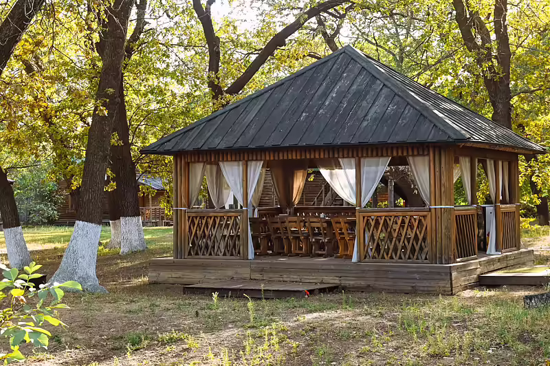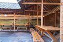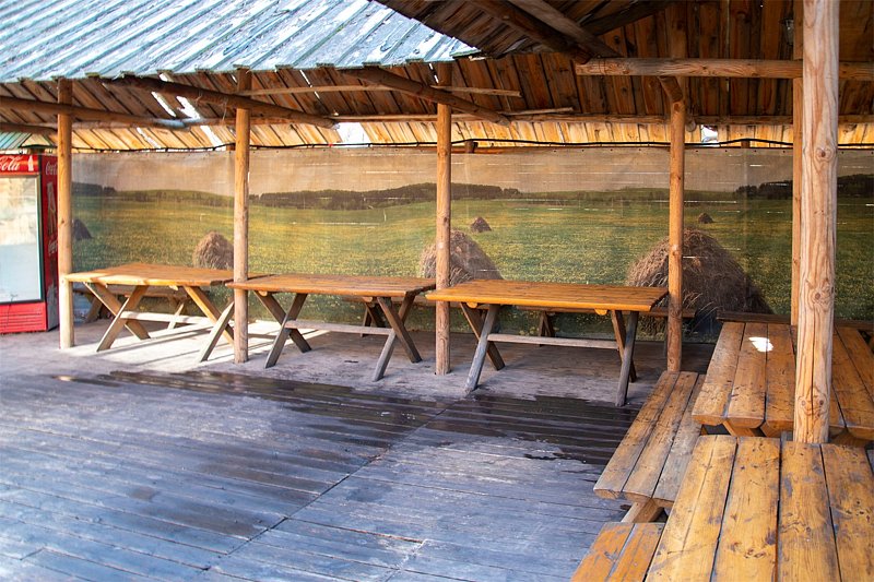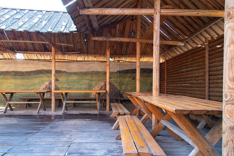 Оснащены столами, лавками или стульями, холодильником, мангалом и мангальными принадлежностями, такими как решетка для барбекю или шампурами (в количестве 6 штук).