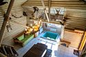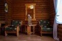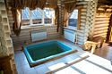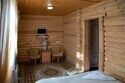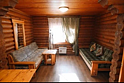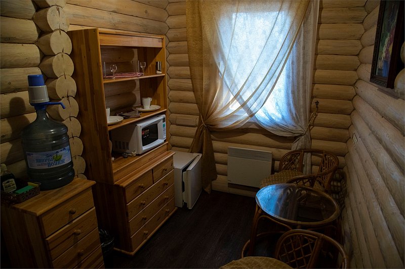 Отдельно стоящий, двухместный, двухкомнатный комфортабельный сруб, включающий спальную комнату, гостиную и мини-кухню. В спальной комнате: двуспальная кровать, прикроватные тумбы, мягкая мебель, ЖК телевизор. В гостиной: журнальный столик. Мини-кухня: холодильник, микроволновая печь, электрический чайник, кулер с питьевой водой, посуда. Ванная комната оборудована душевой кабиной. В каждой комнате есть электрический радиатор с ручной настройкой температуры. Есть возможность предоставления дополнительного спального места в виде евро раскладушки (оплачивается отдельно).