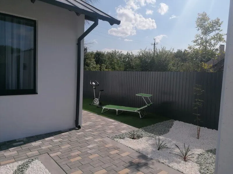 На территории для гостей имеется мангал, качели, кресло-кокон, шезлонги, настольный теннис. Дом оснащён необходимой бытовой техникой; в доме 2 спальни и кухня-гостиная с выходом на террасу.