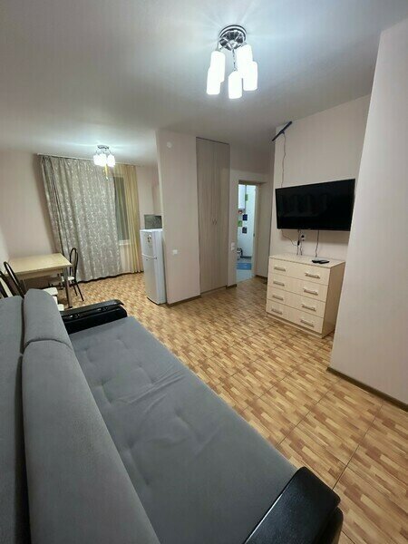Холодильник, сан. узел, чайник, набор посуды.