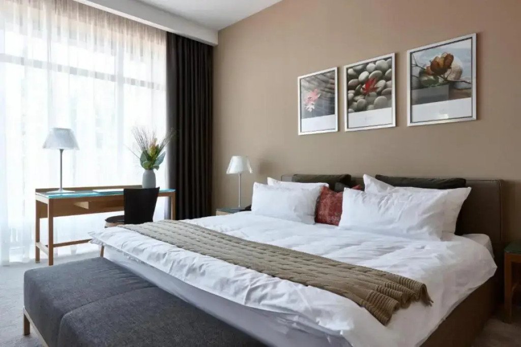 Номер уютно обставлен и оснащён необходимым, чтобы отдохнуть после долгого и насыщенного дня. Имеются телевизор и мини-бар. Оснащение зависит от выбранной категории номера.