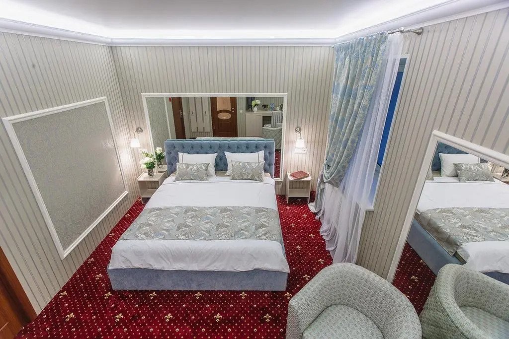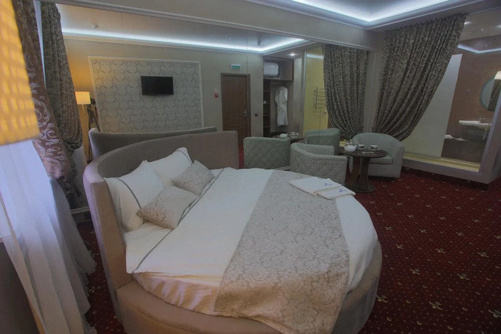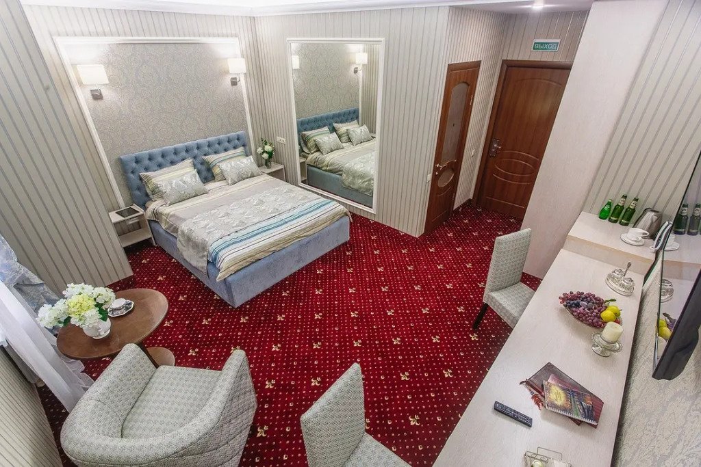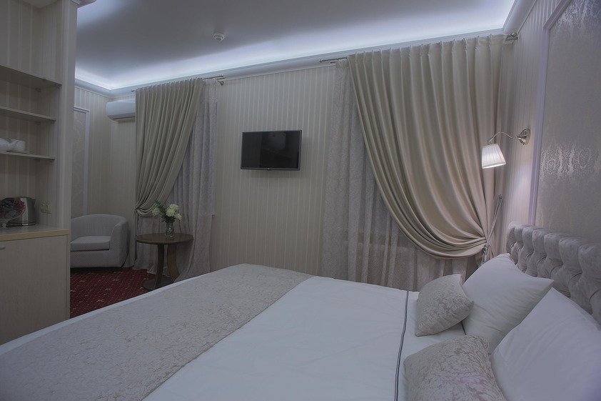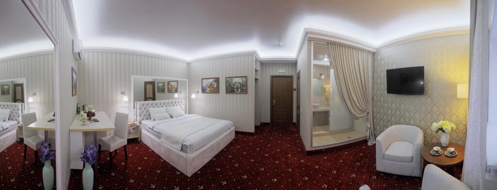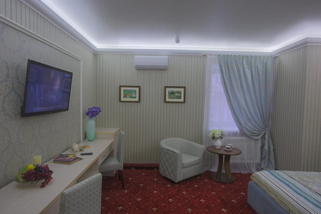 Чтобы вы могли отдохнуть после долгого дня, в номере есть телевизор и халат. Оснащение зависит от выбранной категории номера.