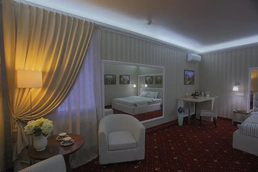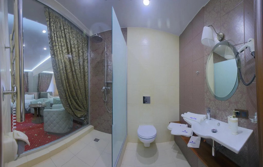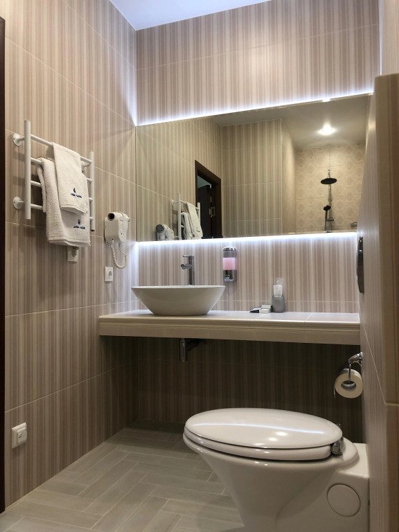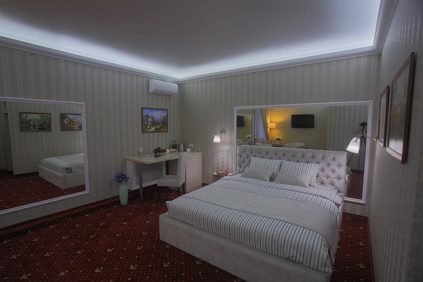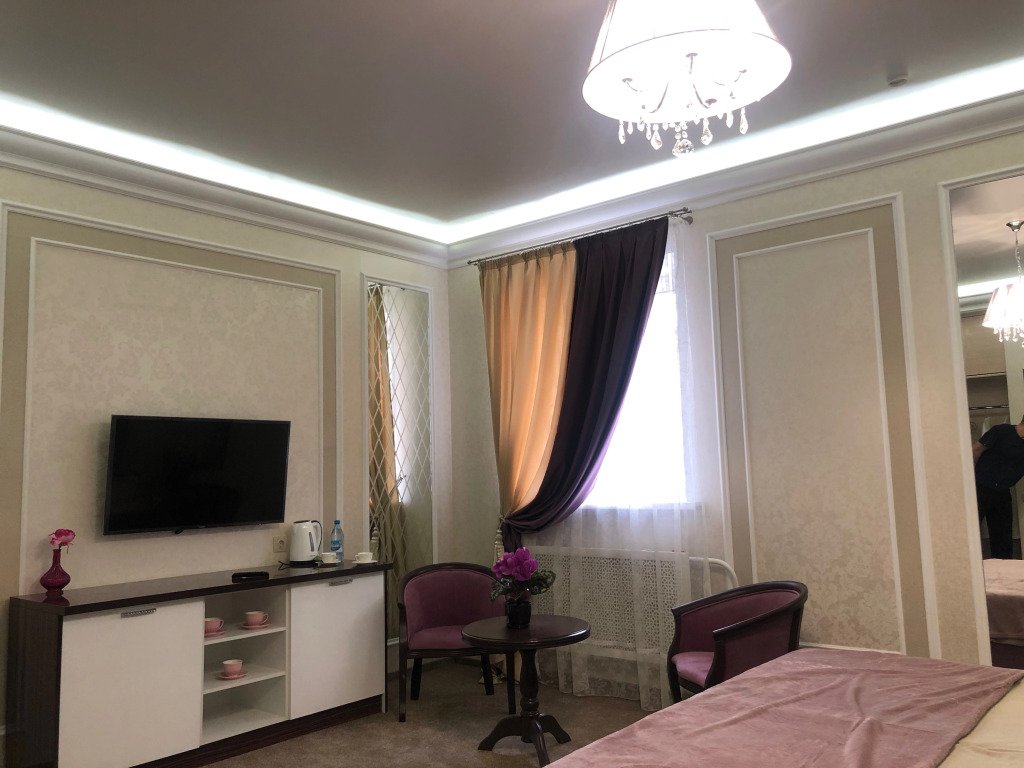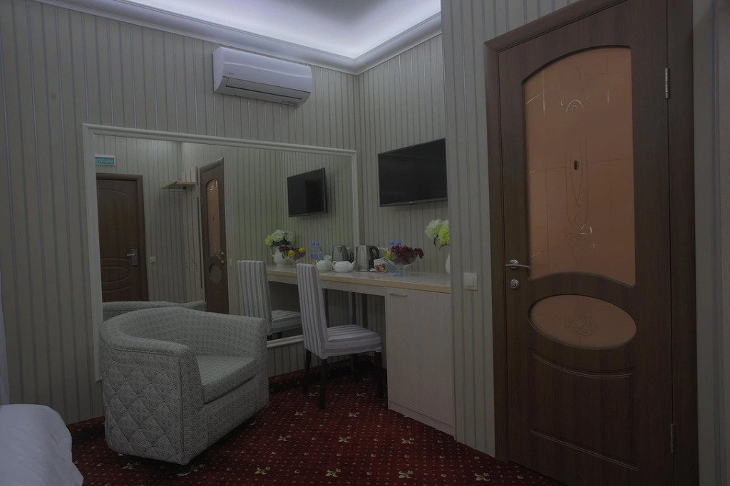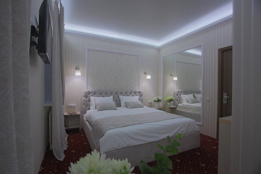 Чтобы вы могли отдохнуть после долгого дня, в номере есть телевизор и халат. Оснащение зависит от выбранной категории номера.
