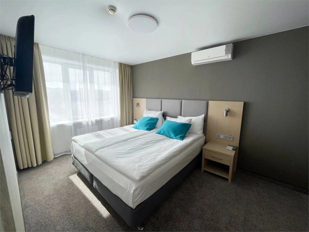 Гостиничный комплекс предлагает номера категорий «Стандарт», «Бизнес», «Студио» и «Люкс», среди которых есть номера для людей с ограниченными возможностями и аллергиков. В каждом номере: телефон, телевизор, мини-бар и бесплатный доступ к Wi-Fi.