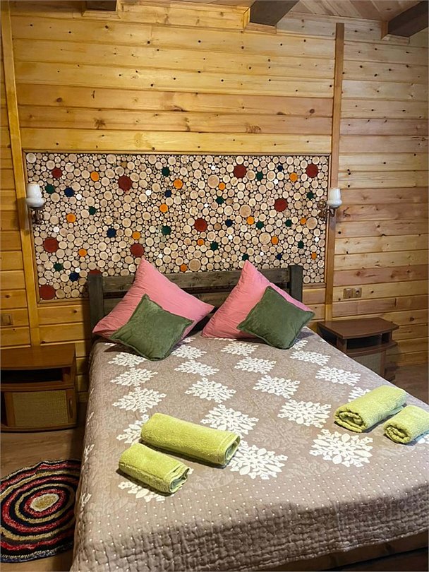 Номер тематический 10-местный "Русская изба". Сдается полностью. У номера своя уютная уличная зона: мангал на вымощенном камнем дворике, просторная беседка В номере 4 изолированные комнаты + кухня + 2 санузла. Кухня полноценная, с плитой, микроволновкой и холодильником. Возможны 4 дополнительных места на раскладных удобных диванчиках, стоящих в одной из спален. Номер занимает половину в отдельностоящего здания.Услуги и удобства
