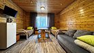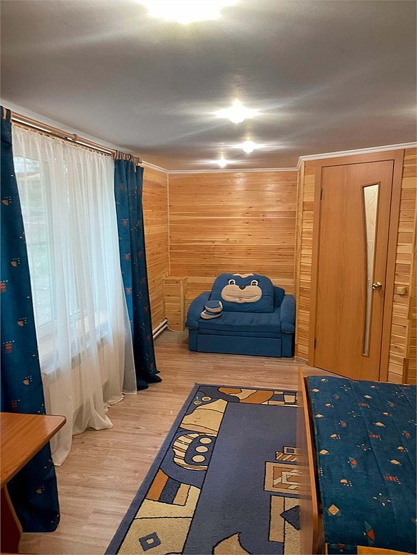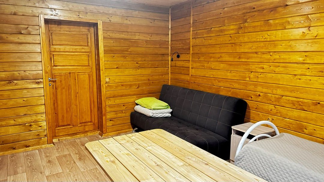 Отдельно стоящий деревянный коттедж на 10 человек. - большая веранда для вечерних посиделок с друзьями или семьёй - 2 этажа - стоит в берёзовой роще - с полноценной кухней со всей бытовой техникой где вы сможете готовить сами свои любимые блюда если не посещаете столовую - очень тёплый с огромными окнами 1 этаж: кухня, уютная гостиная для вечерних посиделок со столом и двумя удобными диванами. Диваны раскладные 2-спальные. Также на 1 этаже 1 изолированная спальня с 2-спальной кроватью. 2 этаж: 2 изолированные спальни с 2-спальными кроватями.Услуги и удобства