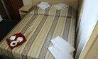 Люкс состоит из двух комнат и ванной, первая комната - "гостинная", в ней шкаф для вещей, стол с телевизором на нем (забудьте о том, чтобы посмотреть ТВ лежа в постели), четырьмя стульями и небольшим холодильником в углу. Вторая комната - "спальня" в ней большая двухспальная кровать с двумя тумбочками по бокам и собственно все. В ванной умывальник с зеркалом, унитаз, душевая кабина и собственный бойлер-водонагреватель. Размер ванной в люксе чуть меньше чем размер комнаты в одноместном стандарте :)