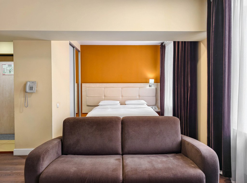 Российским гражданам при заезде обязательно нужно иметь при себе оригинал одного из следующих документов: действующий паспорт РФ или заграничный паспорт. Стойка регистрации работает 24/7. Обратите внимание, что регистрация заезда в период с 00:00 до 13:00 и регистрация отъезда в период с 12:00 до 00:00 осуществляется по тарифу 50% от стоимости одних суток проживания.Во время регистрации заезда гражданам Российской Федерации необходимо предъявить общегражданский паспорт. При размещении детей в возрасте до 14 лет включительно следует предоставить их свидетельства о рождении. Гостям в возрасте до 18 лет включительно следует иметь при себе нотариально заверенное разрешение от одного из родителей на проживание в отеле. Иностранным гостям необходимо предоставить паспорт с визой и миграционную карту. В связи с коронавирусом (COVID-19) в этом объекте размещения сейчас введены дополнительные санитарные меры и меры безопасности. В связи с коронавирусом (COVID-19) ношение маски обязательно во всех общих помещениях этого объекта.