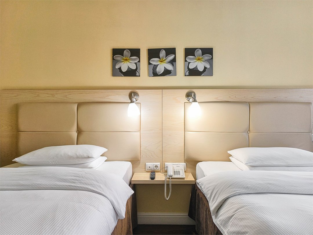 Бизнес "Twin" – просторный номер, площадью 60 кв.м., с 2 раздельными кроватями. Рассчитан на проживание 1-3 человек.Услуги и удобства