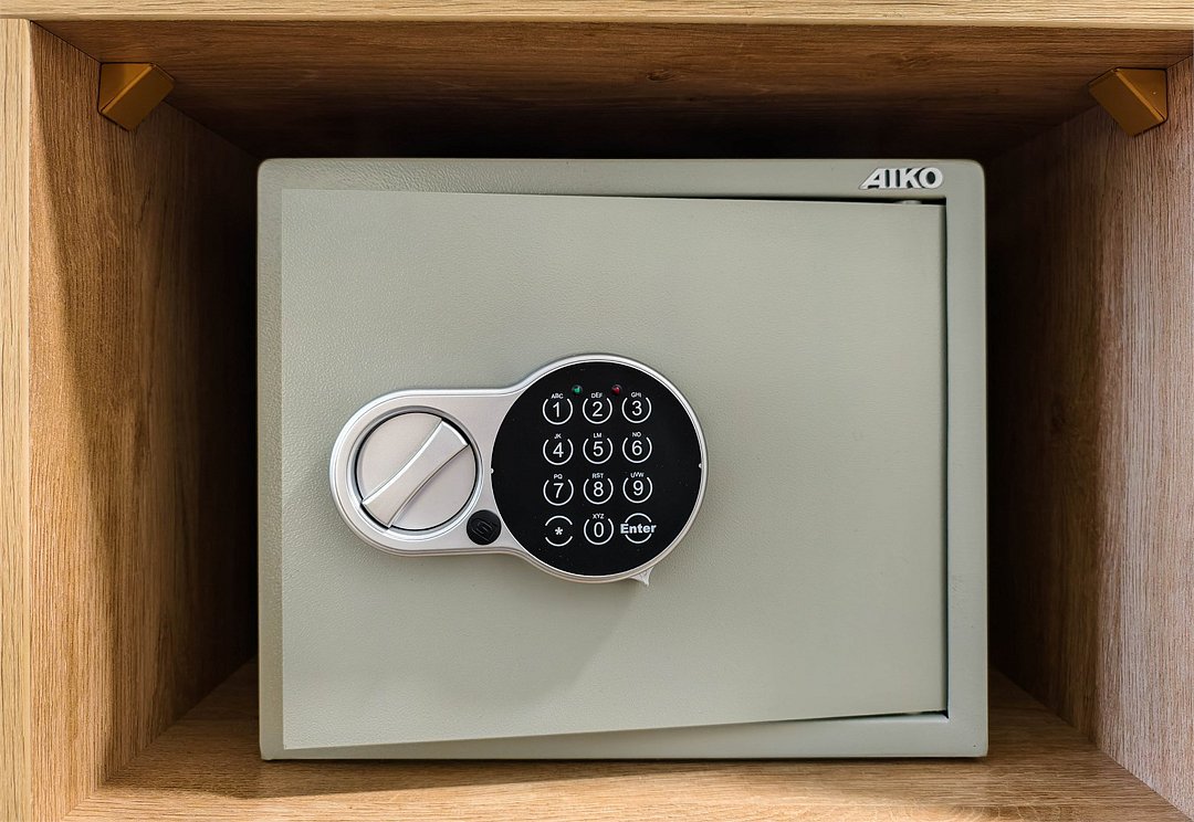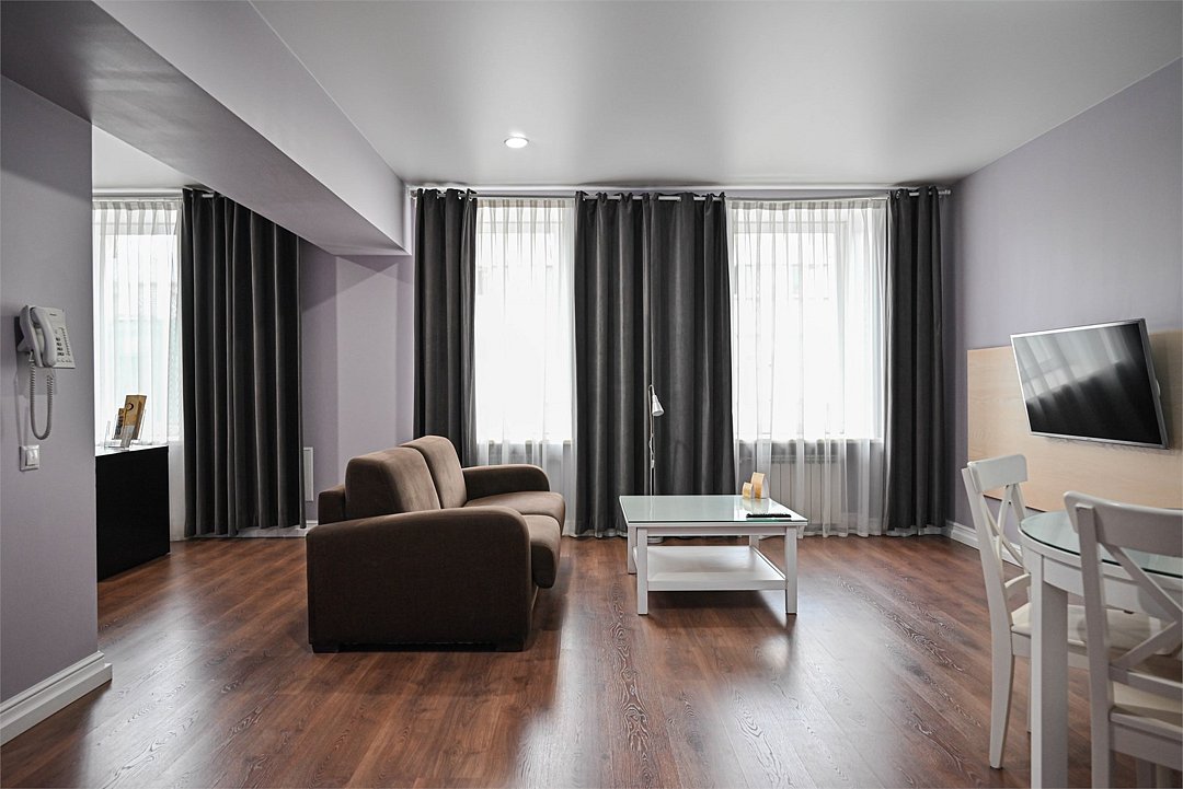 телевизор, кабельное телевидение, интерактивное телевидение, Wi-Fi, телефон, холодильник, фен, система безопасности, электронные замки, плита для приготовления пищи, кофемашина, микроволновая печь, утюг, душевая кабина, гигиенические средства, кровать «Queen size», гладильная доска, детская кровать, диван, стулья, шкаф для одежды, гардеробная, вешалки, журнальный столик, обеденный стол, багажная тумба, зеркало, кухня, чайный набор, набор посуды, информационная карта, меню, сейф, стиральная машина, чайник, унитаз, раковина, мягкая мебель, косметическое зеркало, душ, вид на город, три комнаты, плиточное покрытие, две спальни, вид во двор, паркетВ гостиничном номере