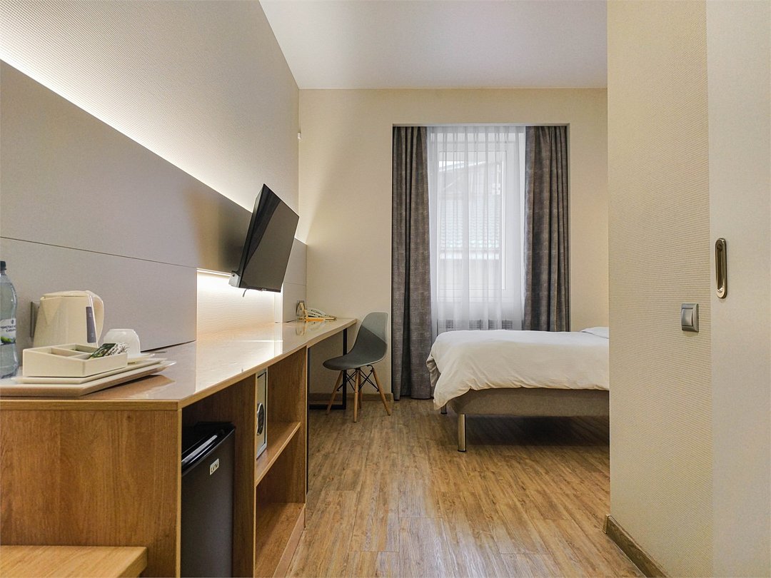 Уютный однокомнатный номер категории «Комфорт» площадью 20 м². Идеальный вариант для одноместного размещения.Услуги и удобства