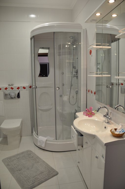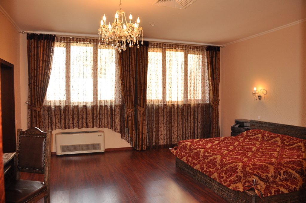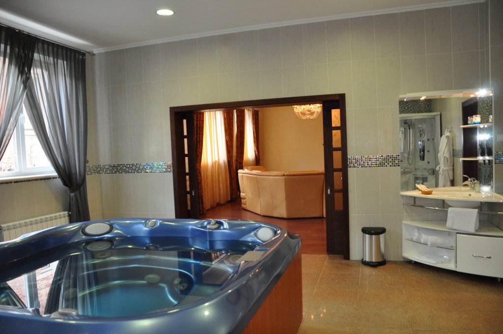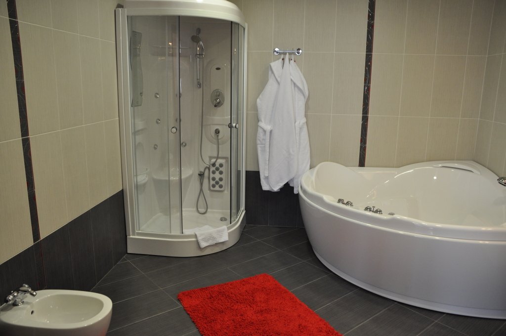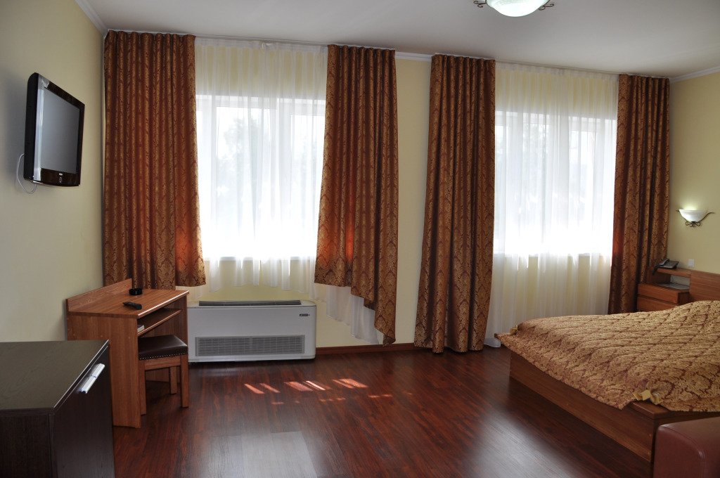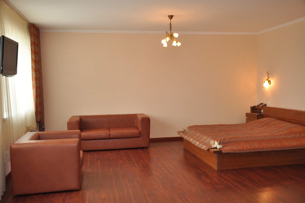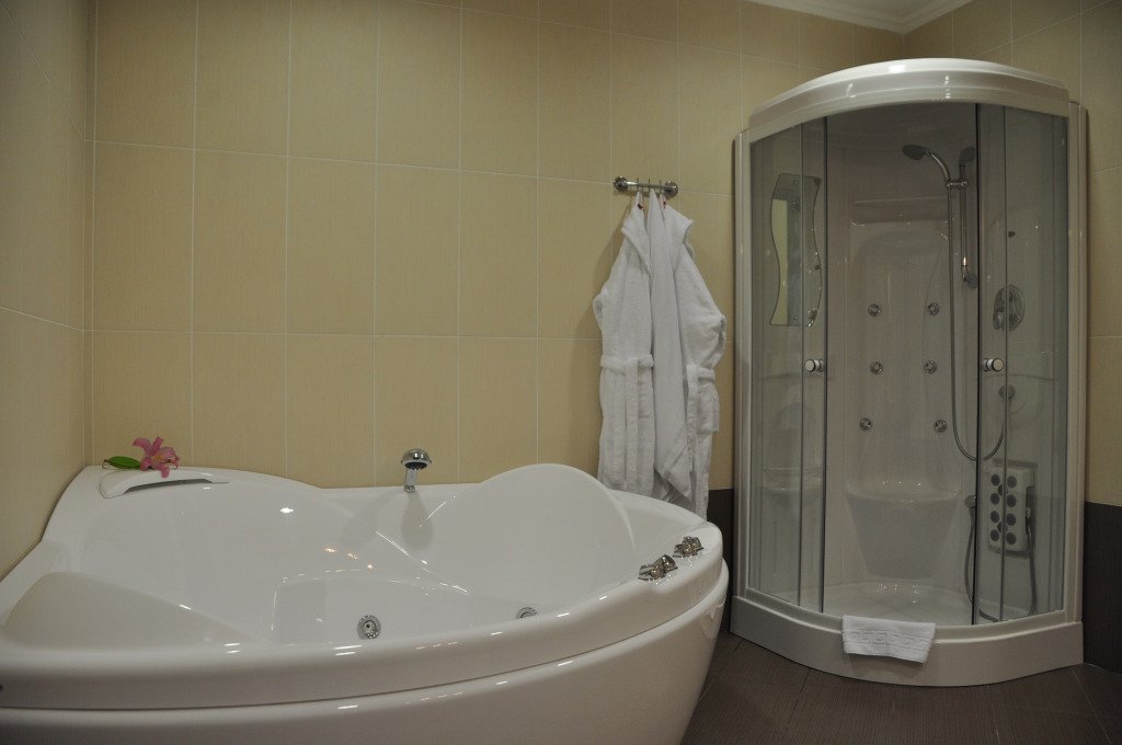 В номере вы найдёте телевизор и халат. Оснащение зависит от выбранной категории номера.