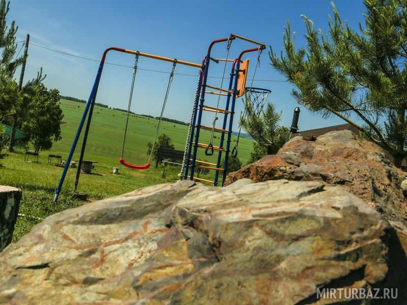 На территории имеется детская игровая площадка с различными активностями, которые не дадут детишкам скучать.
