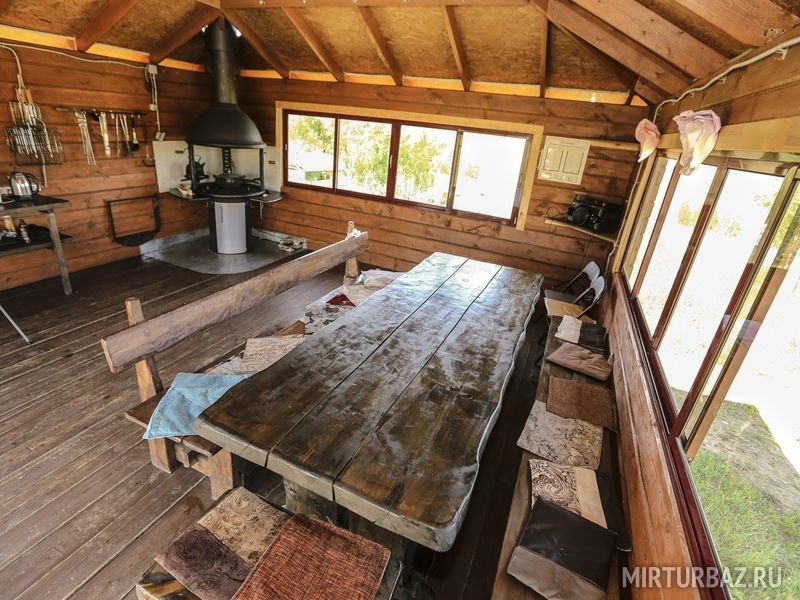 Беседка, рассчитана на 20-25 человек. Имеется всё для приготовления пищи на углях, музыкальный центр, раковина с теплой водой, чайник.