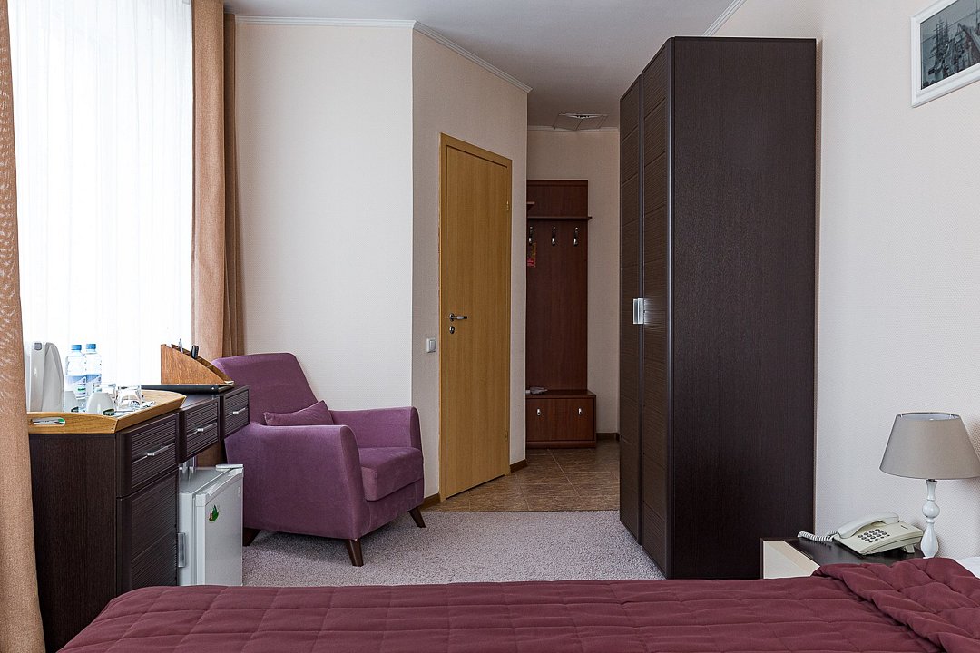 Комфортный двухместный номер Джуниор Сюит, с возможностью размещения одного или двух человек. Площадь комнаты не менее 25 кв.м. За проживание детей в возрасте до 7-и лет без предоставления отдельного места, оплата не взимается.Услуги и удобства