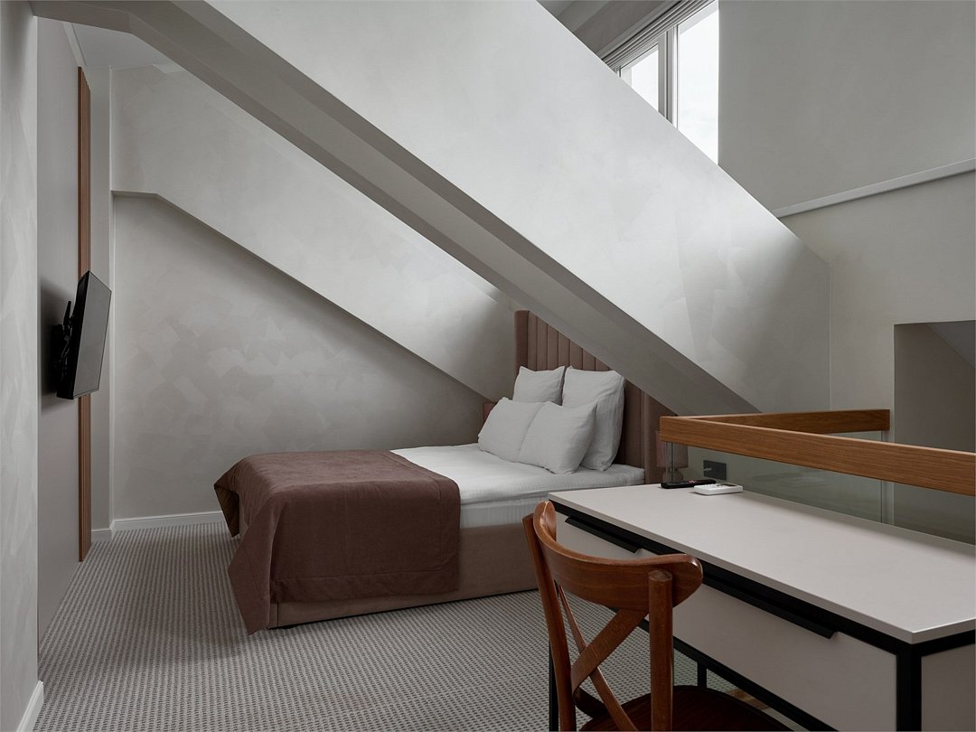 Двухуровневый номер Люкс, с возможностью размещения до четырех человек на дополнительных спальный местах. Площадь комнаты не менее 35 кв.м. За проживание детей в возрасте до 7-и лет без предоставления отдельного места, оплата не взимается.Услуги и удобства