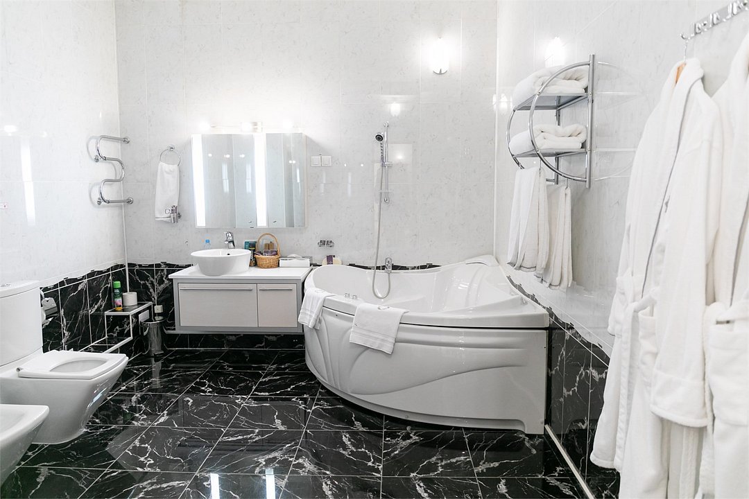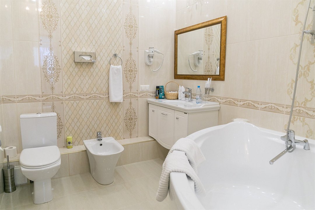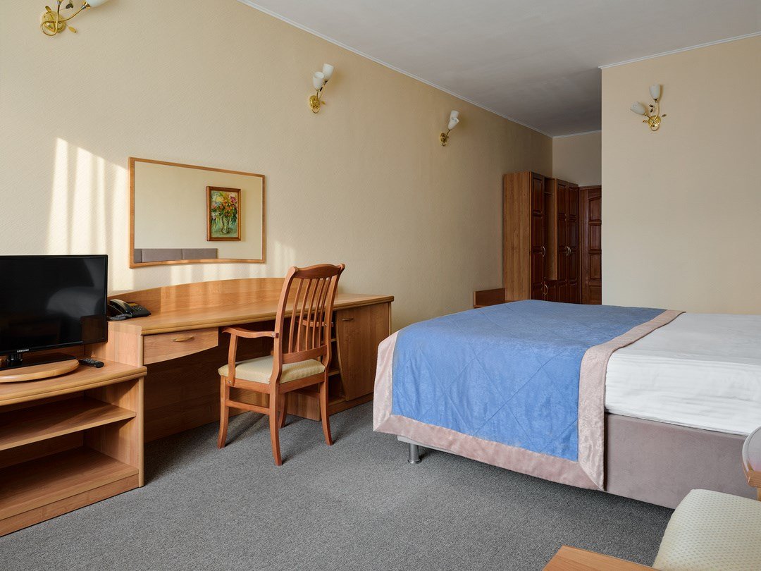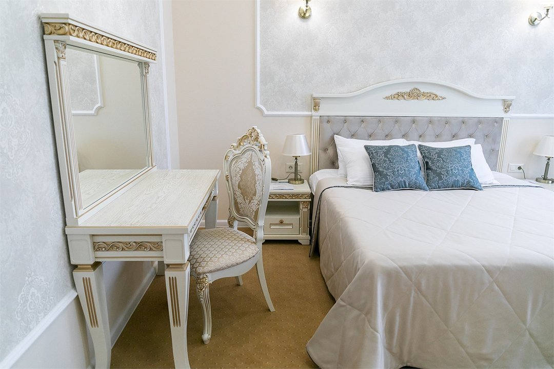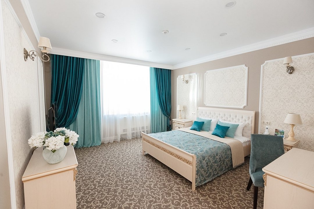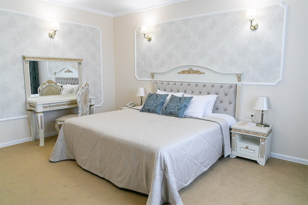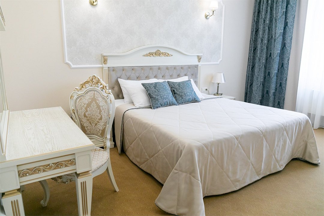 Простор и современный интерьер удивят Вас своей функциональностью и комфортом, а точность цветового решения наполняют номера - светом и теплом. В номере: телевизор, телефон, возможность выхода в Интернет, мини-холодильник, ванная комната оснащенная феном, туалетные принадлежности, халат, тапочки.Услуги и удобства