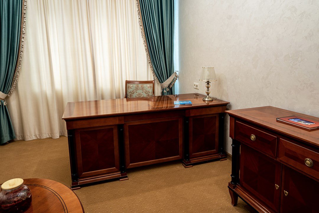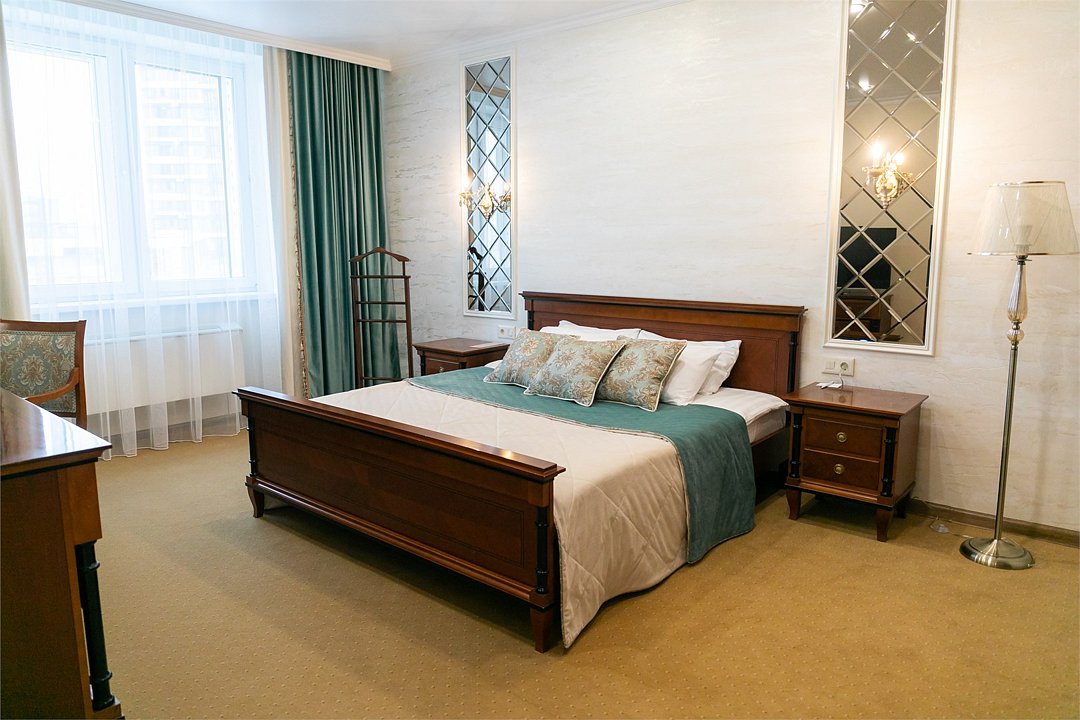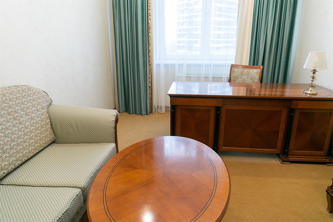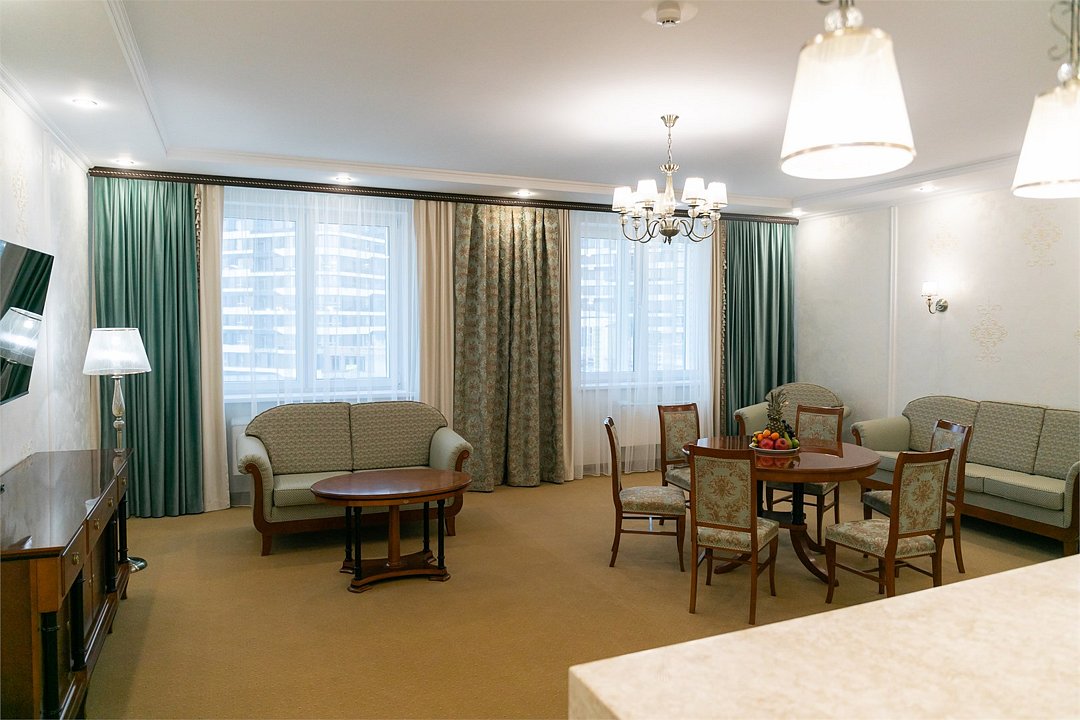 Окунитесь в атмосферу исключительного комфорта, которую Вам подарит проживание в трехкомнатных апартаментах. Три просторные комнаты: спальня, кабинет и гостиная сочетают в себе черты роскошного номера и делового офиса одновременно. Представительность, безупречность деталей и ощущение домашнего комфорта позволяют сочетать в себе бизнес и отдых.Услуги и удобства