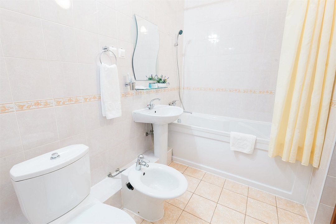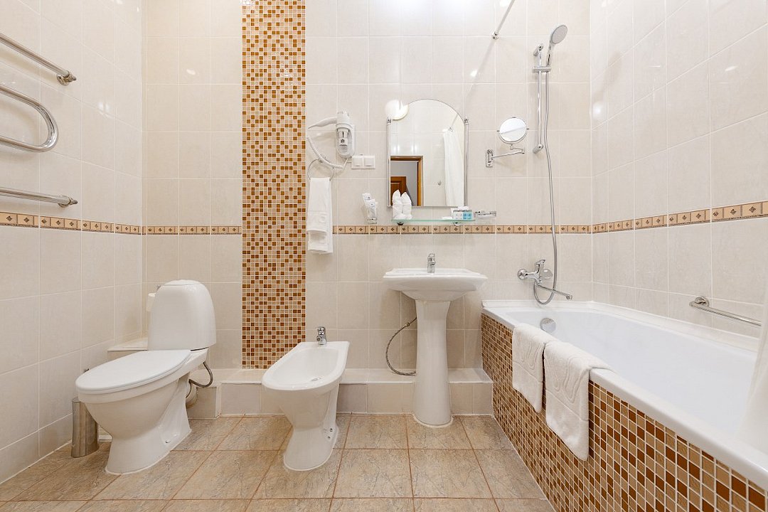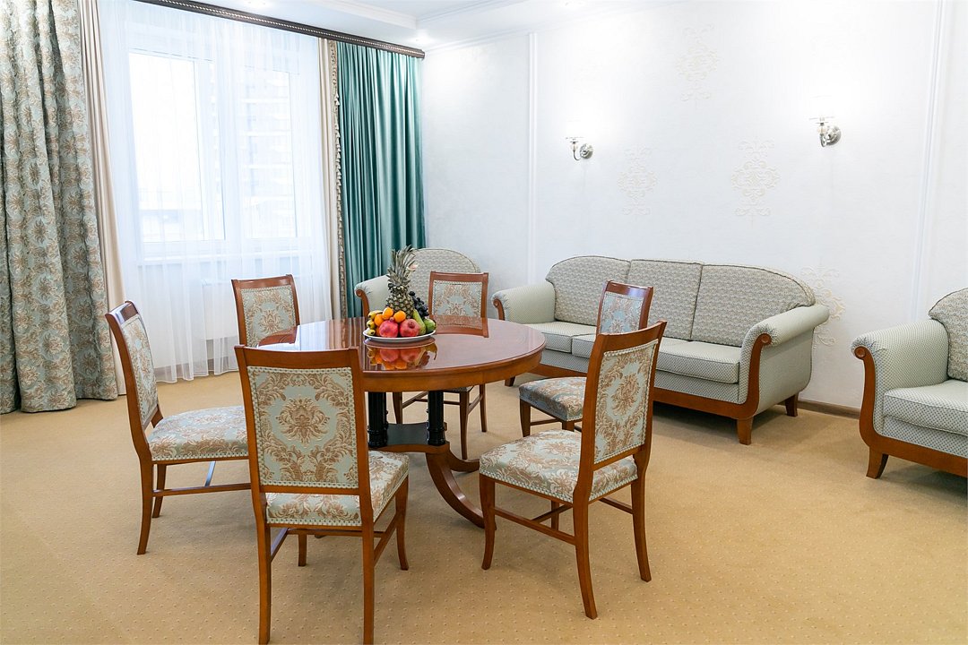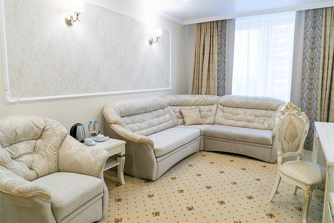 Площадь номера от 50 кв.м. Просторный двухкомнатный номер, идеально подходящий для проживания с семьей. В номере имеются две отдельные комнаты: спальная комната и гостиная, с двуспальным раскладным диваном, подходящие для комфортного размещения с детьми. Также номер оснащен двумя санузлами.Услуги и удобства