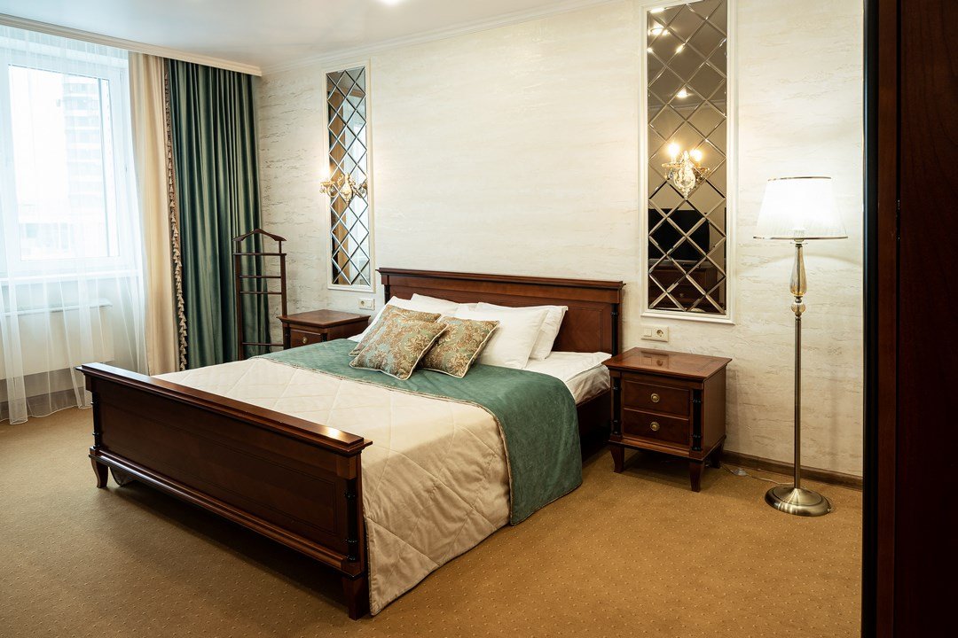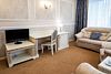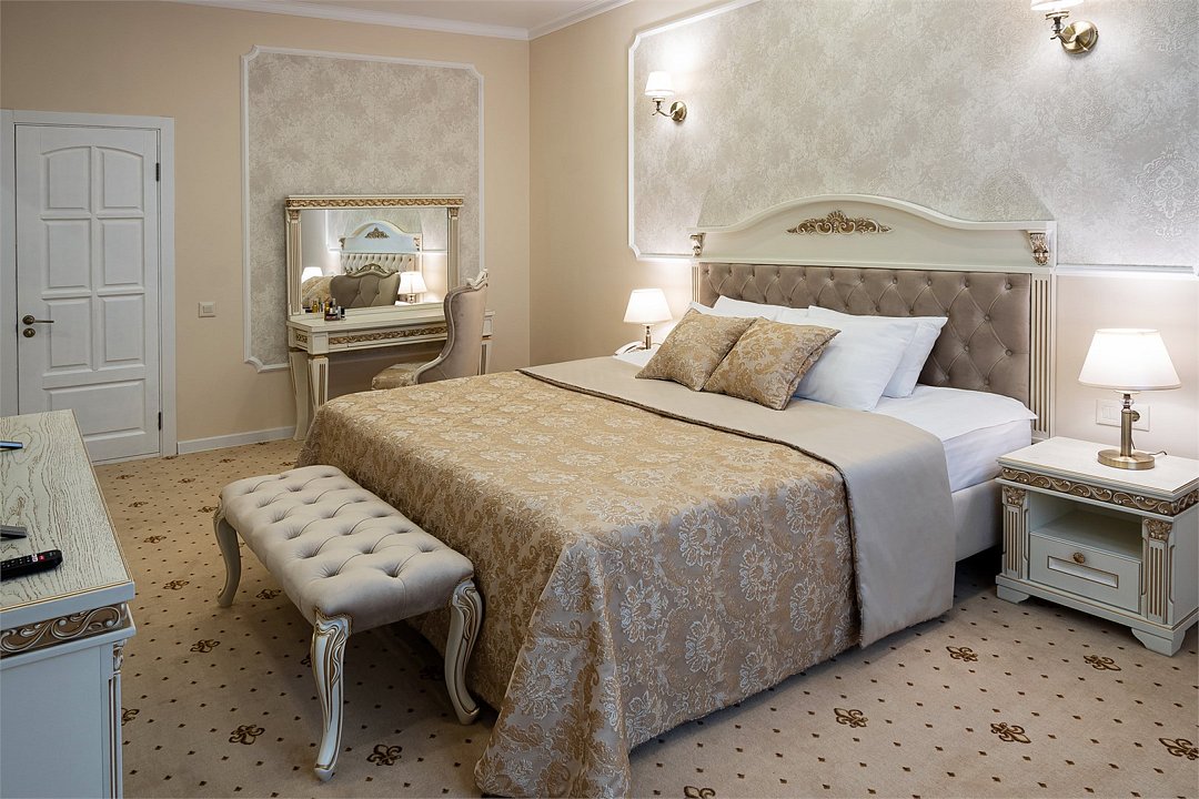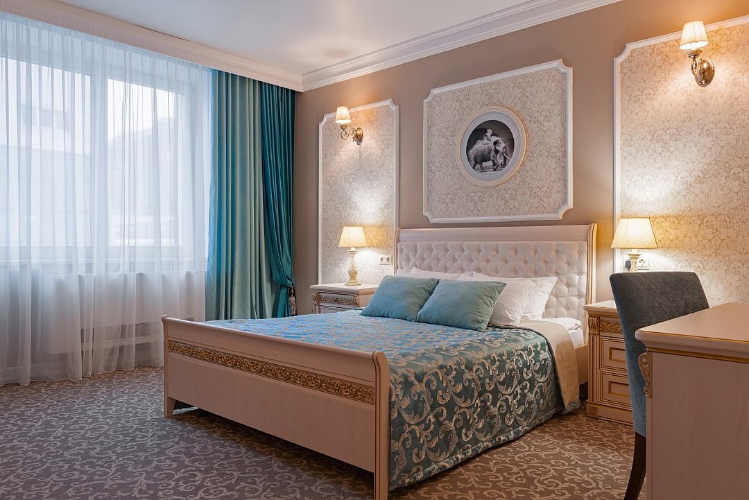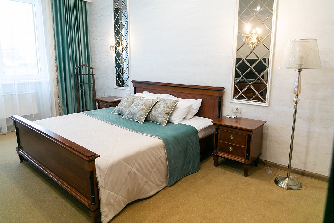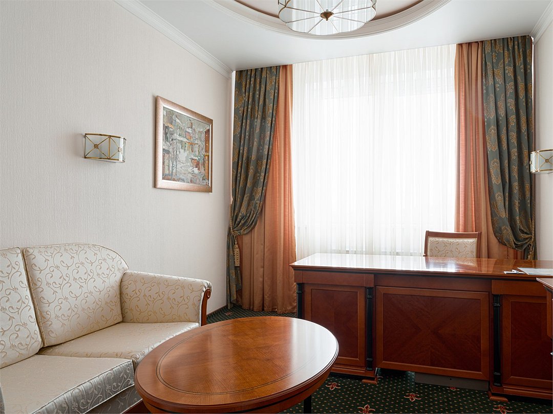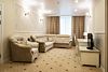 Простор и современный интерьер удивят Вас своей функциональностью и комфортом. Ценителям элегантности и удобства предлагаем остановиться в номере "Люкс". Вы оцените уют спальной комнаты, выразительный интерьер гостиной, где размещены диванная группа для отдыха и рабочее место.Услуги и удобства