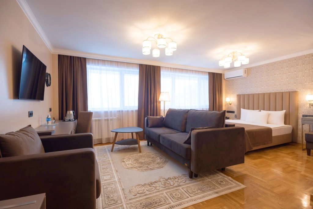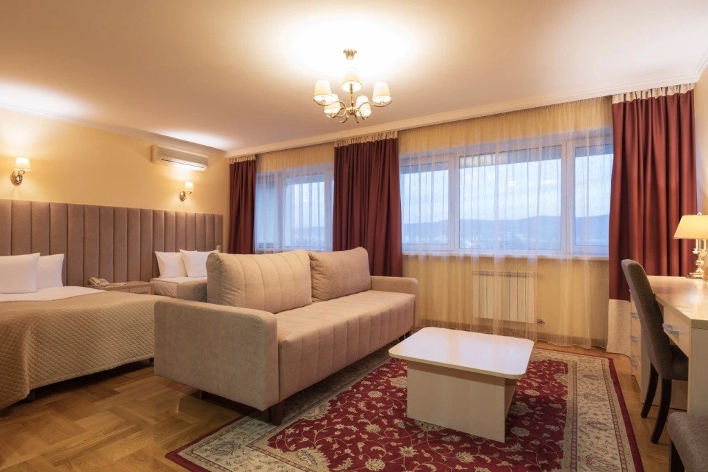 Дополнительные услуги: трансфер, бесплатная парковка, прачечная, бесплатная гладильная комната, круглосуточное кафе, салон красоты, сауна, бесплатная кардио-зона с велотренажером и беговыми дорожками, экскурсии по городу и его окрестностям.