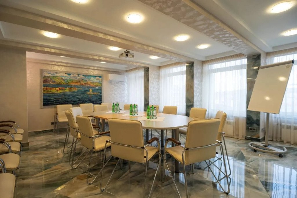 Гостиница располагает конференц-залами для мероприятий различных форматов. Вместимость залов от 8 до 50 персон. Возможна организация питания на мероприятии: кофе-брейк, обед, ужин, фуршет, банкет. К услугам деловых людей — бизнес-центр гостиницы, в котором можно воспользоваться широким спектром дополнительных услуг, круглосуточно доступное рабочее место, оборудованное компьютером с доступом в Интернет, аренда автомобиля.