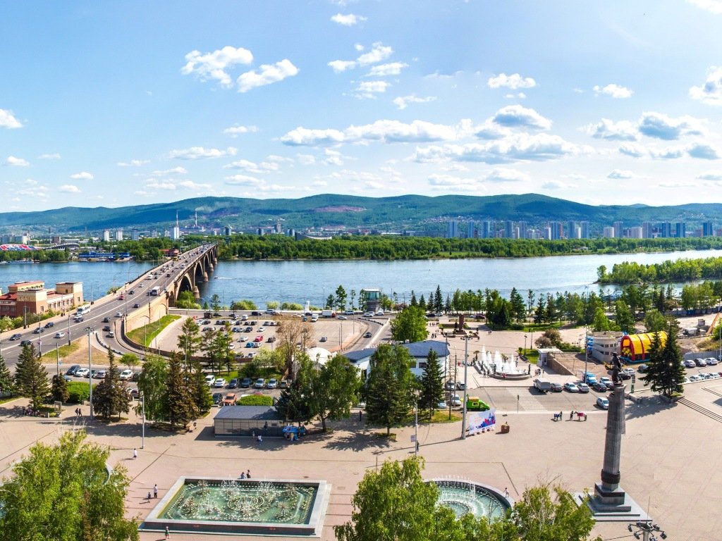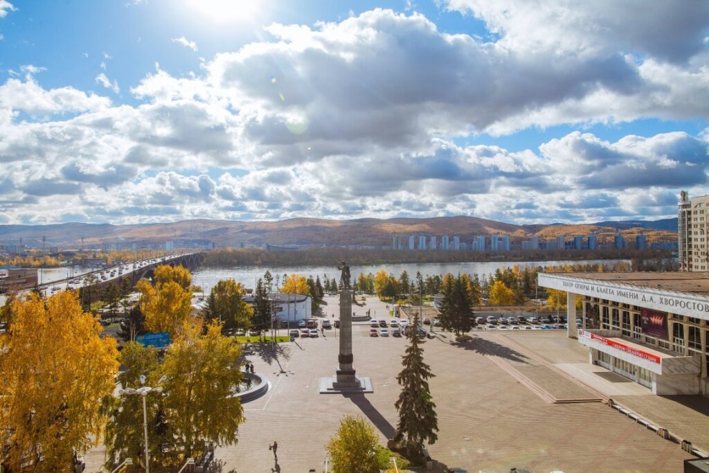Гостиница «Красноярск» находится в самом центре Красноярска. Из окон гостиницы открывается панорамный вид на город и реку Енисей. Рядом с отелем расположена крупная транспортная развязка — можно добраться до любой точки города без пересадок.