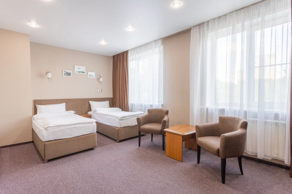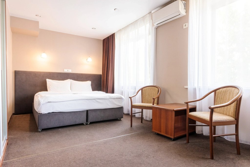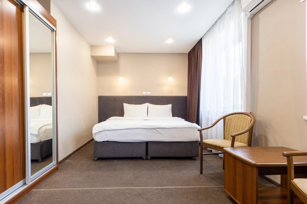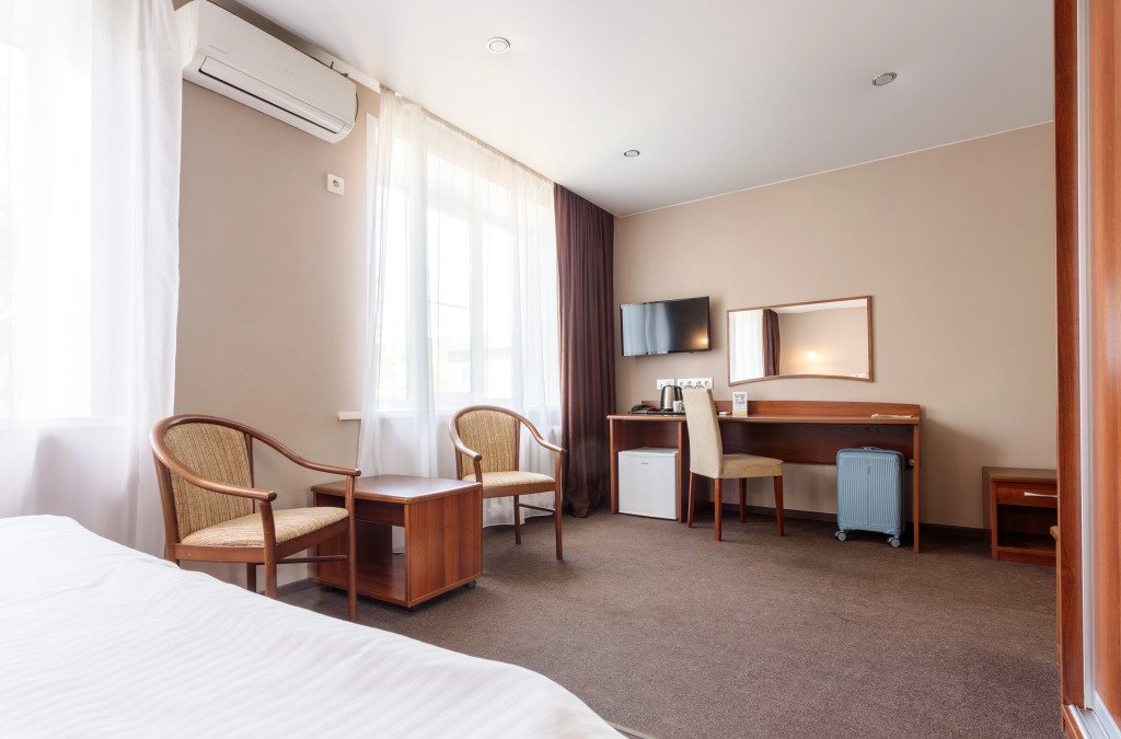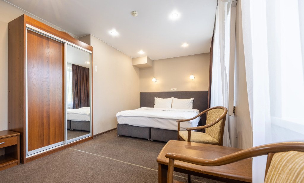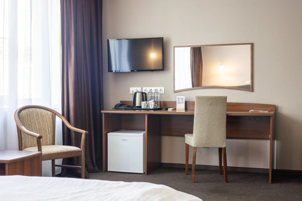 В номере гостей ждут телевизор и халат. Оснащение зависит от выбранной категории номера.
