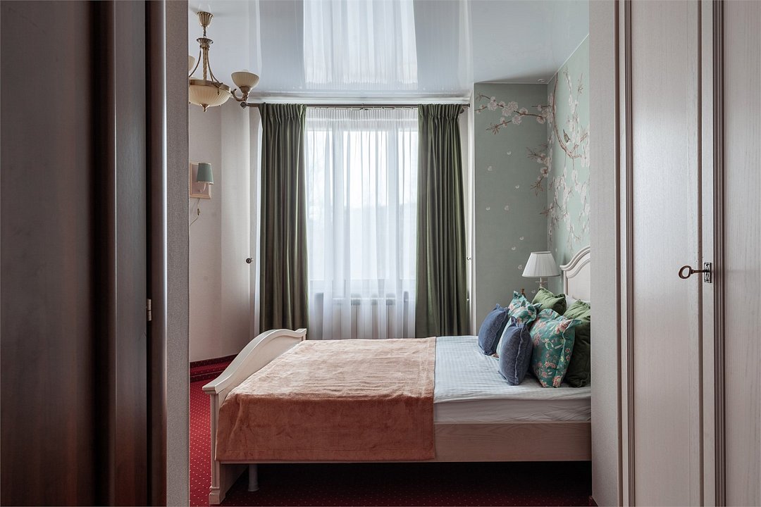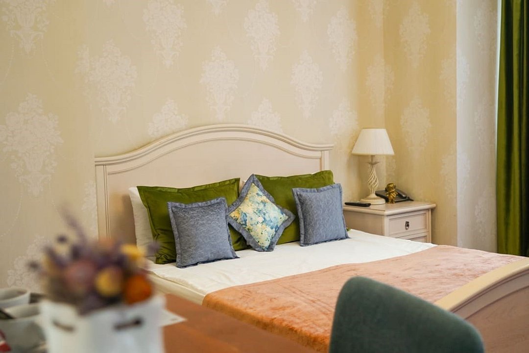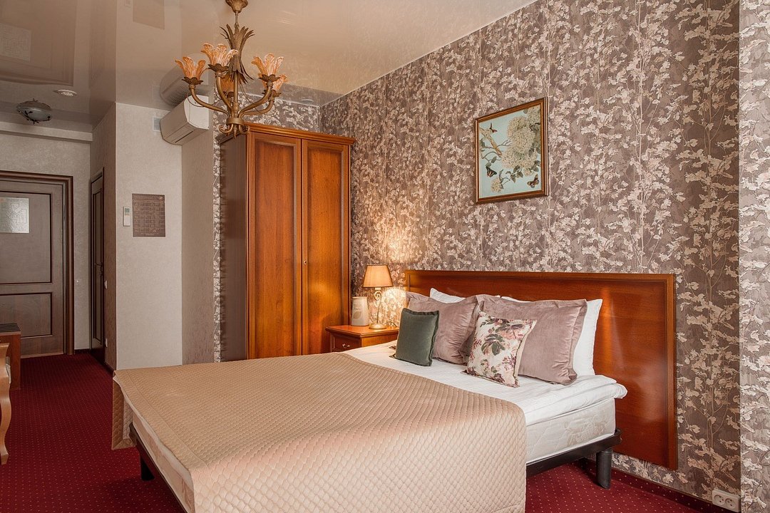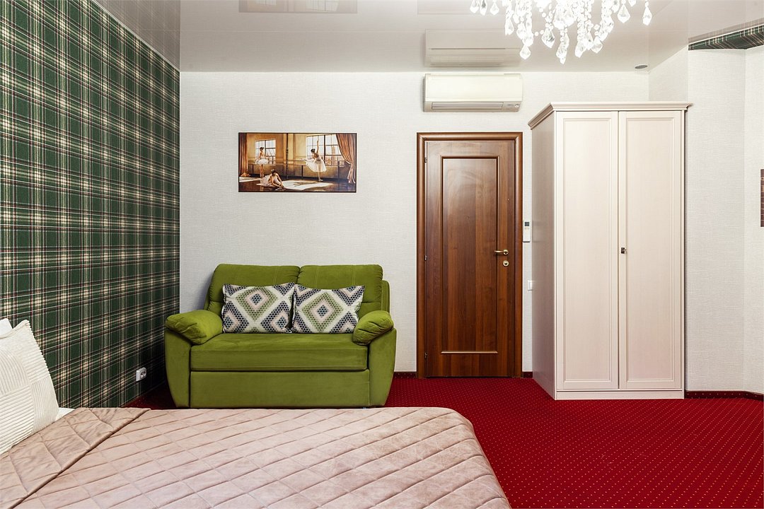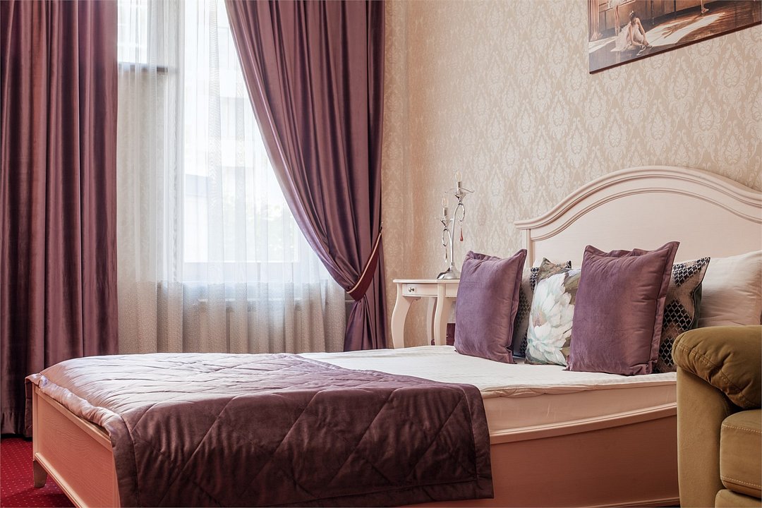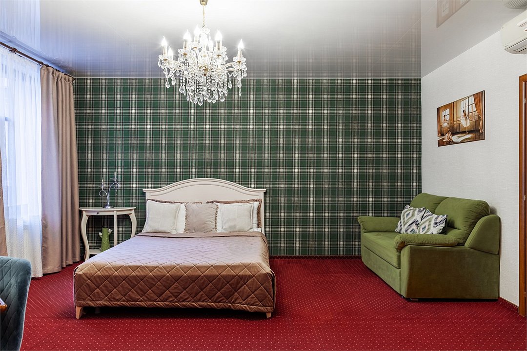 "Улучшенный комфорт" это шикарные светлые номера с двумя окнами и замачательным видом из окна на парк "Сады Мечты". В номере установлен диван-кровать, который с легкостью трансформируется в спальное место и позволит с комфортом разместиться даже трем гостям! В номере для Вашего удобства имеется три зоны: гардеробная, чтобы Вы могли аккуратно разложить все ваши вещи; рабочая зона, оборудованная письменным столом и креслом, чтобы Вы смогли продуктивно поработать в тишине; и, конечно же, зона отдыха с шикарной кроватью, ортопедический матрас на которой обеспечит Вам полноценный и здоровый сон! Для Вас всегда наполнен мини-бар, наглажен халат и подготовлены мягкие тапочки, приготовлен чай и вкусности – для того, чтобы Вы, действительно, смогли отдохнуть в нашем уютном отеле.Услуги и удобства