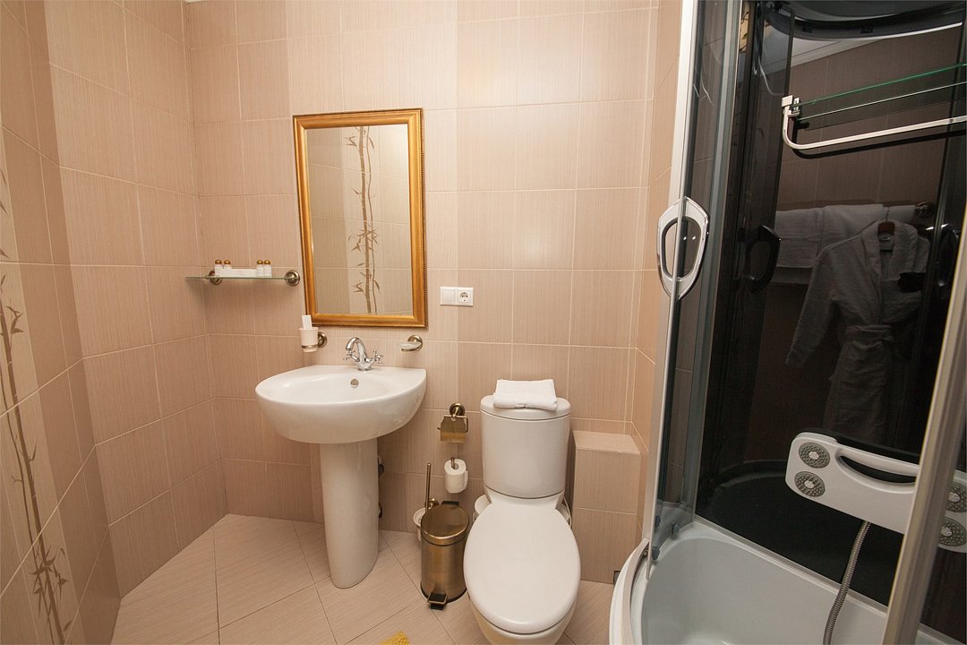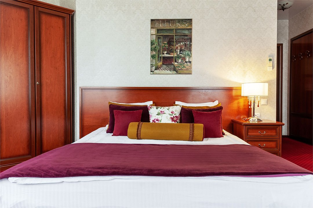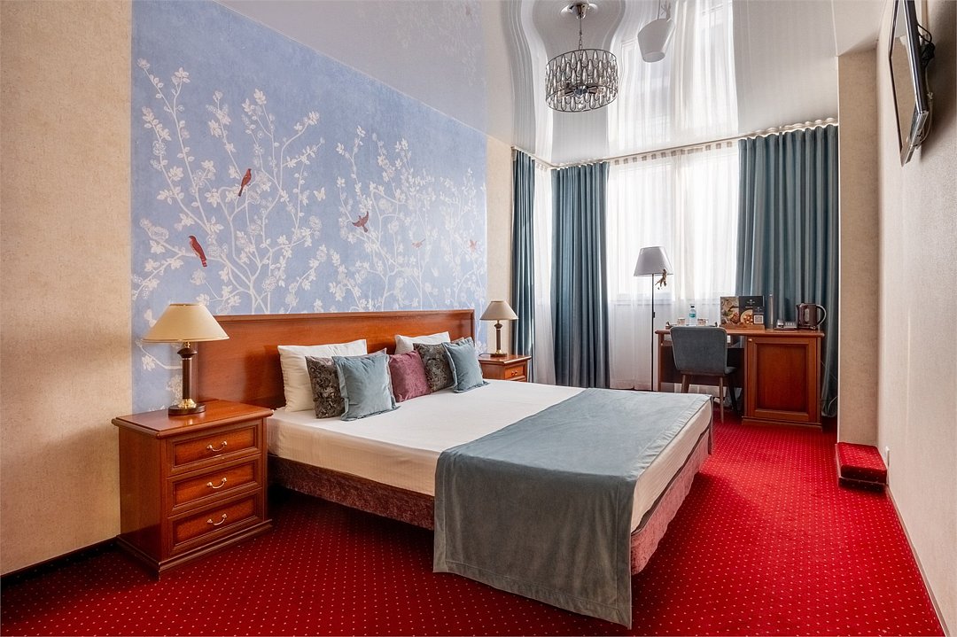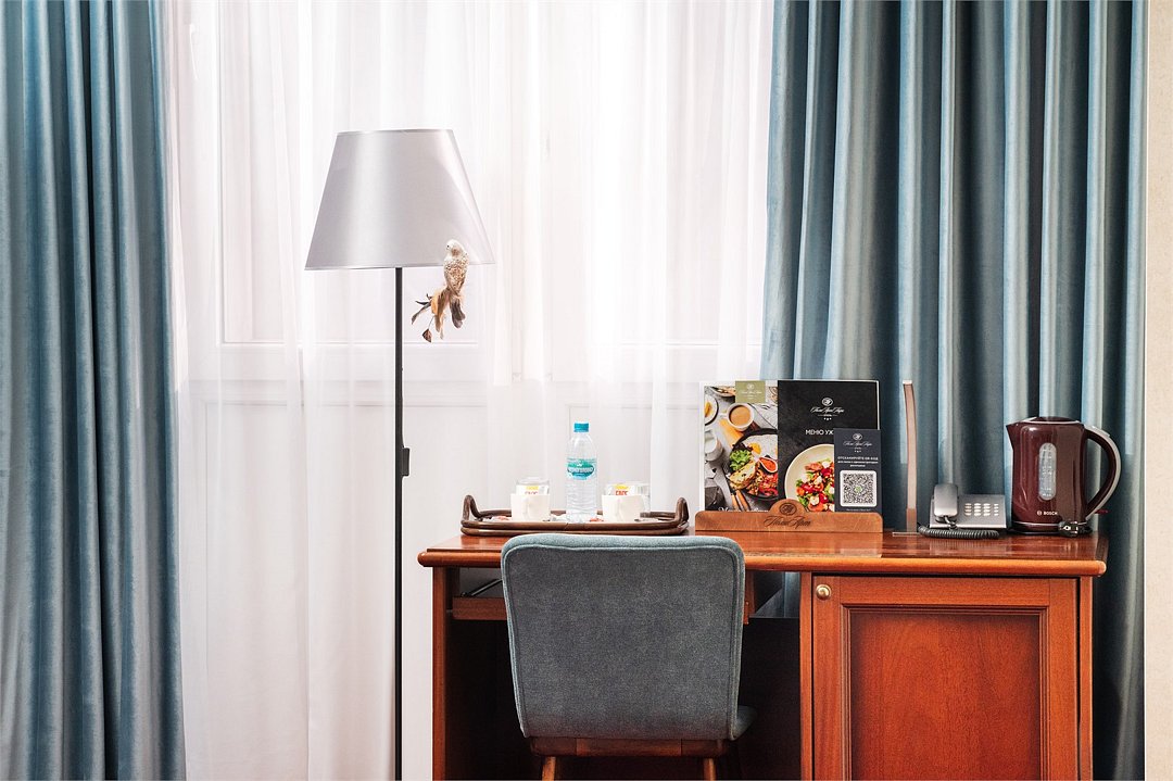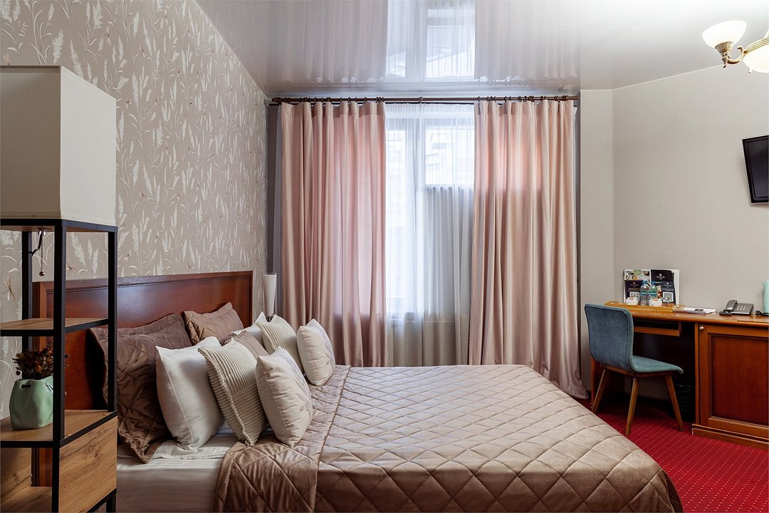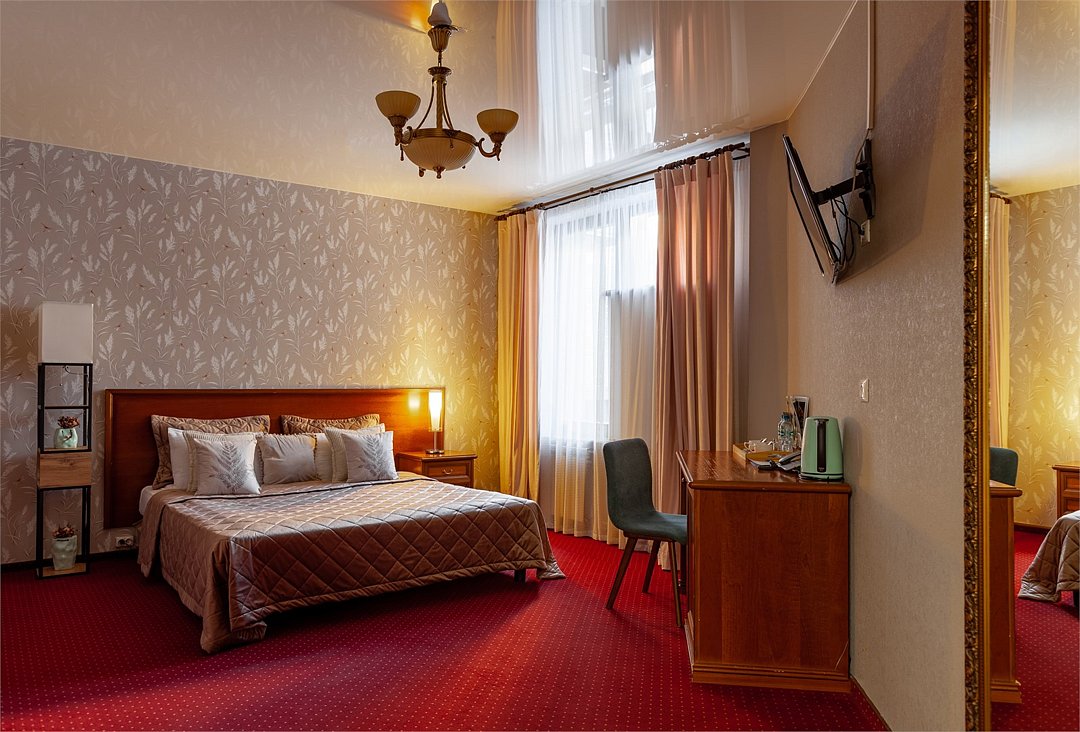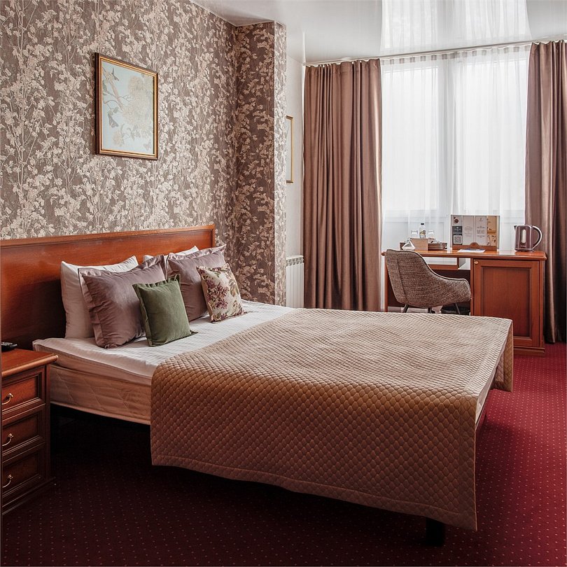 Комфорт (Comfort) – двухместные номера, общей площадью 34 кв.м. Большие, светлые комнатыподарят гостям отеля чувство уюта и комфорта, а большая двуспальная кровать подарит крепкий сон. Рабочая зона оборудована письменным столом, за которым Вы сможете продуктивно поработать. В номерах свои собственные ванные комнаты, оснащенные высококачественной сантехникой, фенами, туалетными принадлежностями. Для всех гостей - мягкие махровые халаты и тапочки!Услуги и удобства