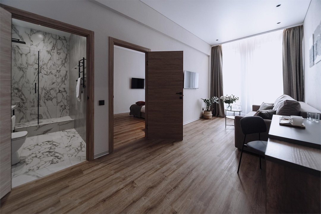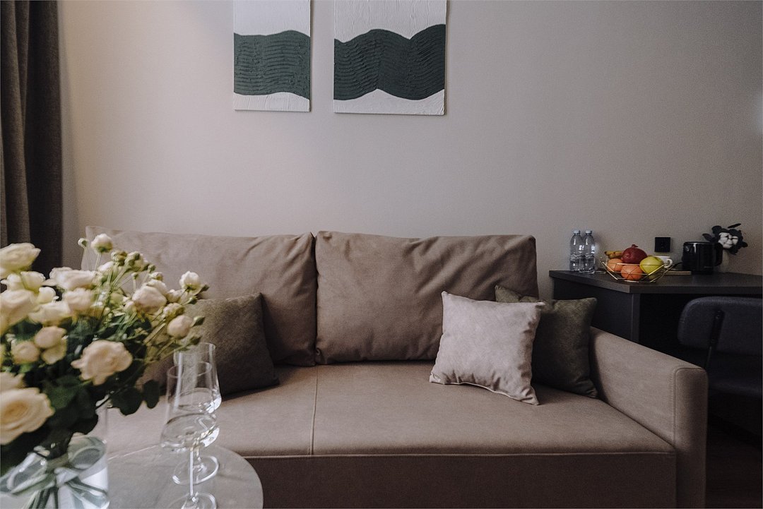 Номера категории "Люкс" — это идеальное сочетание стиля и пространства, где могут разместиться до трех человек. Эти двухкомнатные апартаменты созданы для тех, кто хочет насладиться атмосферой уюта и комфорта!Услуги и удобства