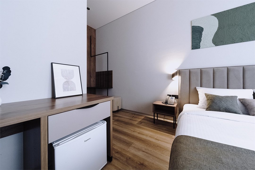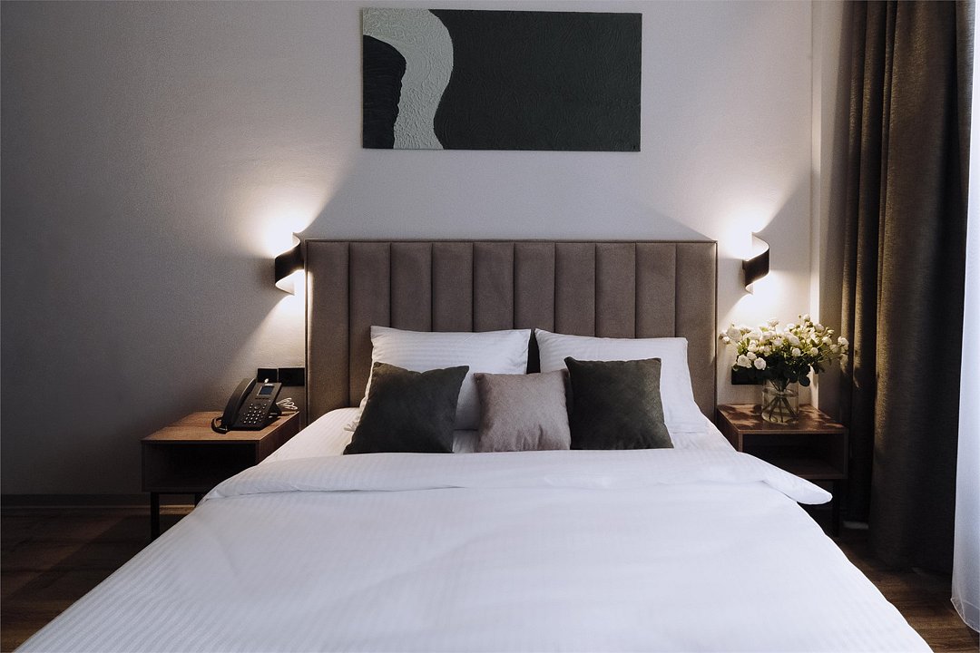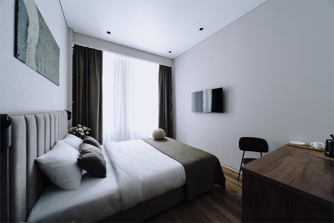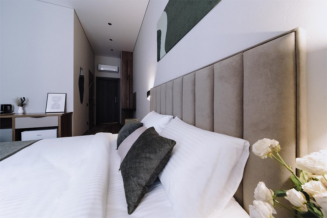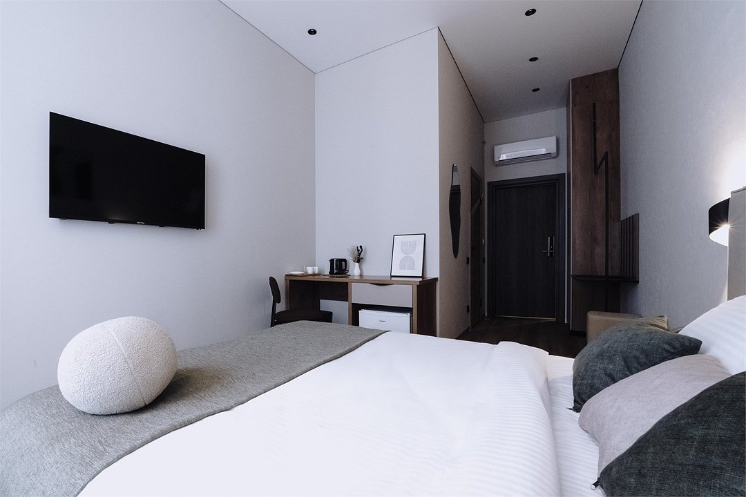 Номера категории «Стандарт» — это идеальный выбор для тех, кто ценит комфорт и функциональность. Каждый номер оформлен в современном стиле, создавая уютную атмосферу для отдыха и работы.Услуги и удобства