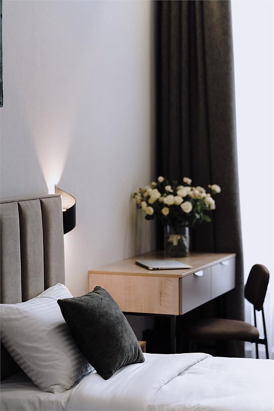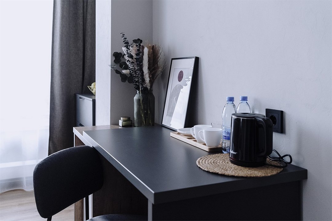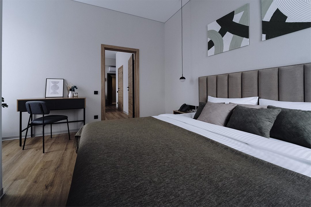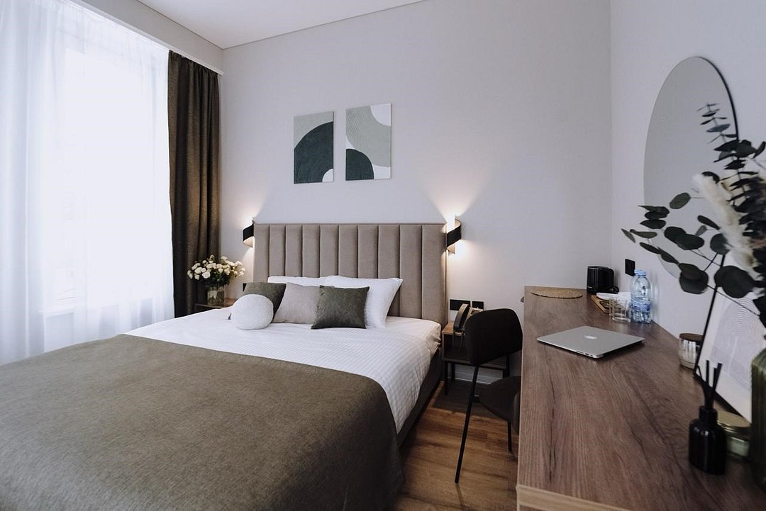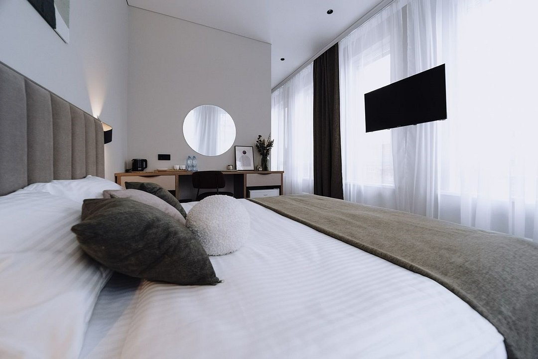 Номера категории «Стандарт» — это идеальный выбор для тех, кто ценит комфорт и функциональность. Каждый номер оформлен в современном стиле, создавая уютную атмосферу для отдыха и работы.Услуги и удобства