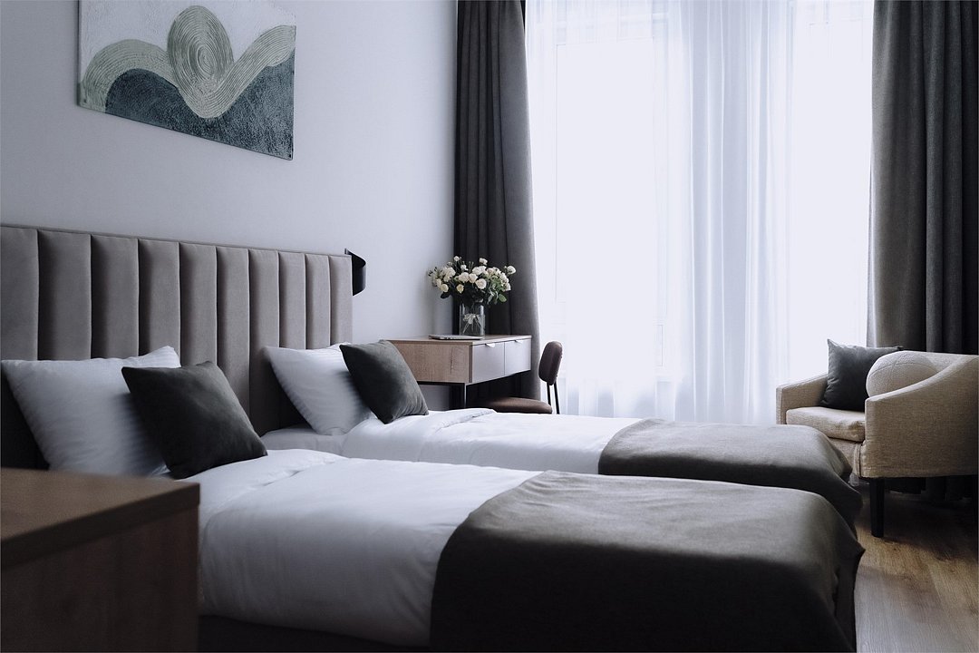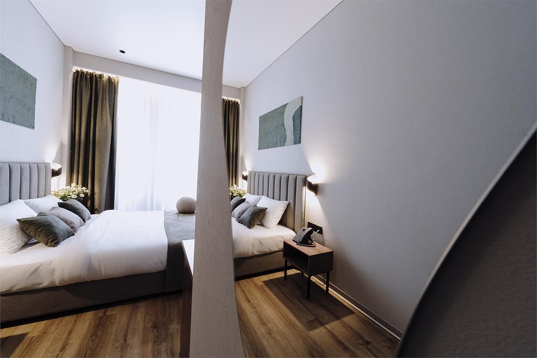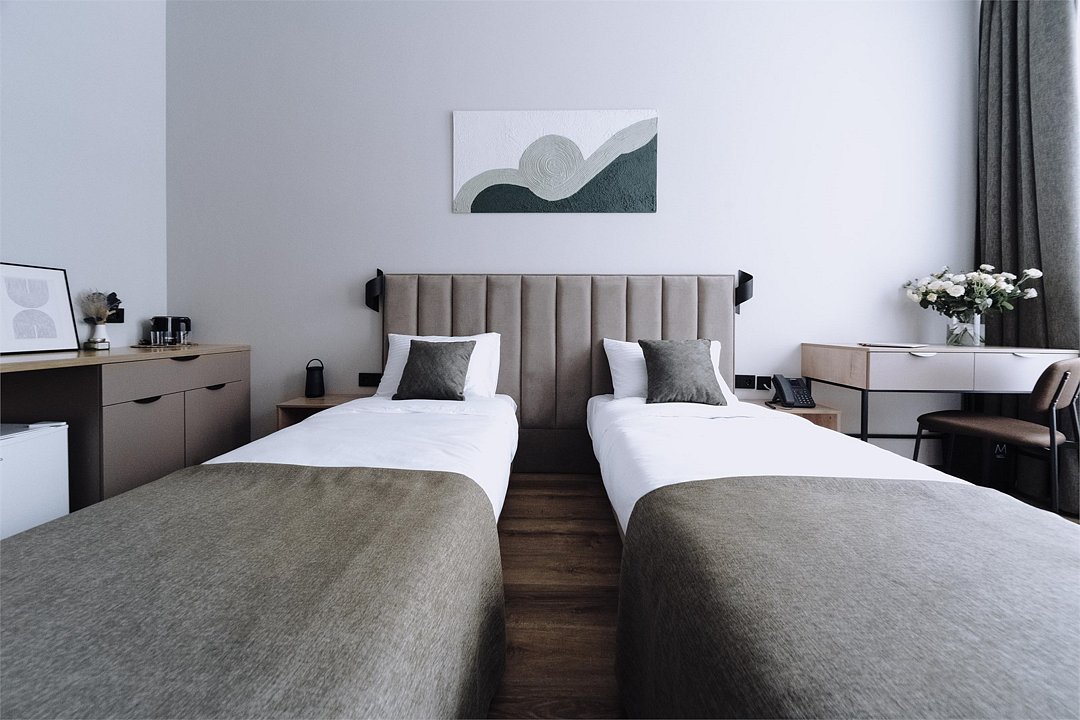 Номера категории «Комфорт-Твин» — это идеальное сочетание стиля, уюта и великолепного вида. Просторные и светлые, эти номера созданы для тех, кто ценит комфорт и качество, предлагая идеальные условия для отдыха или деловых поездок.Услуги и удобства