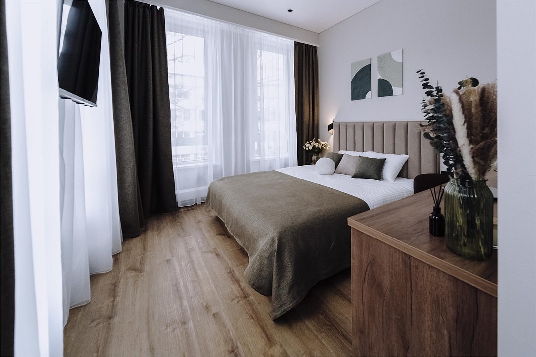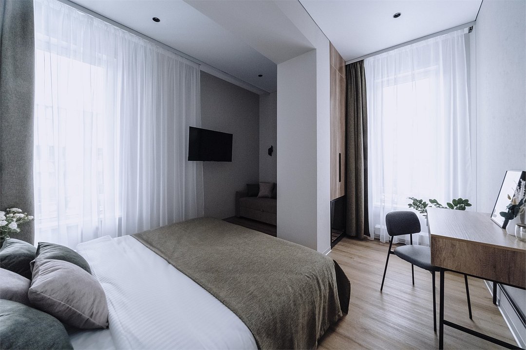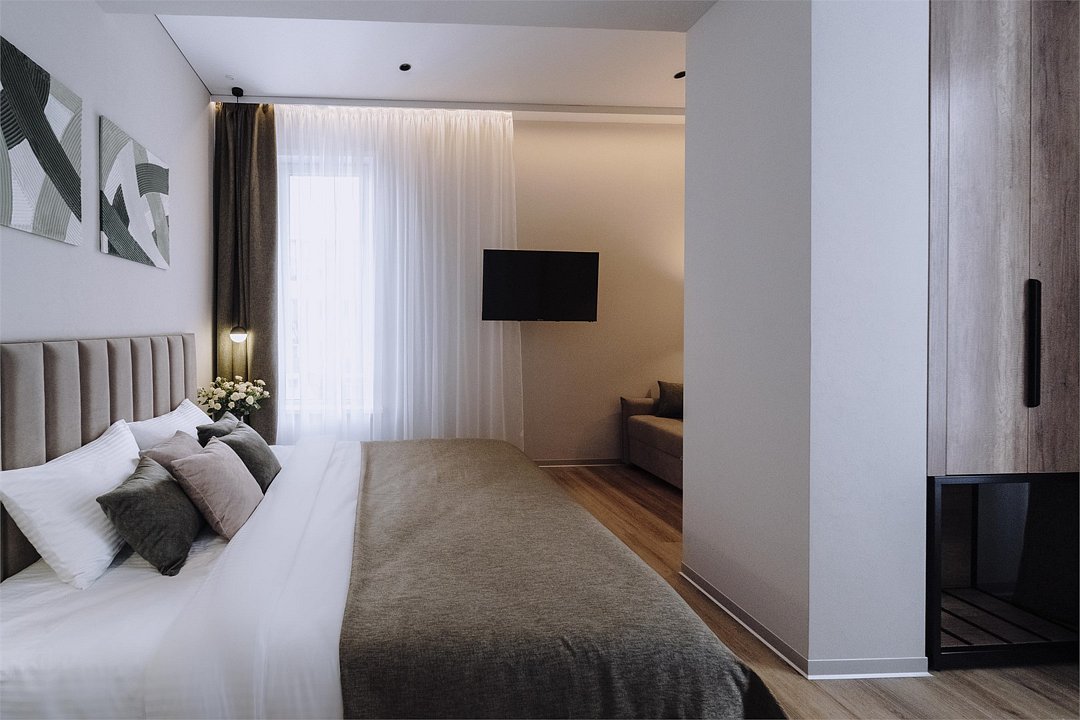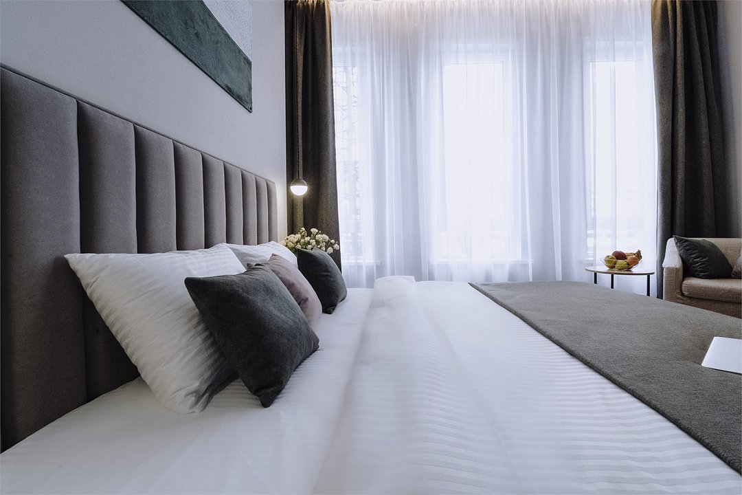 Номера категории "Комфорт Плюс" — просторные, светлые и уютные. Идеально подходят для комфортного проживания 3 человек. Огромные окна наполняют пространство естественным светом, создавая атмосферу уюта и спокойствия, а также открывают чудесный вид на город.Услуги и удобства