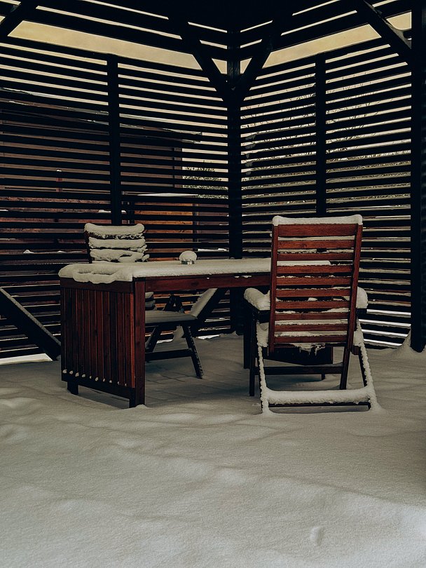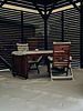 На террасе — зона отдыха, с которой можно любоваться окружающей природой. Рядом установлен мангал для приготовления блюд на свежем воздухе и уютная беседка с мягкими креслами и широким столом.