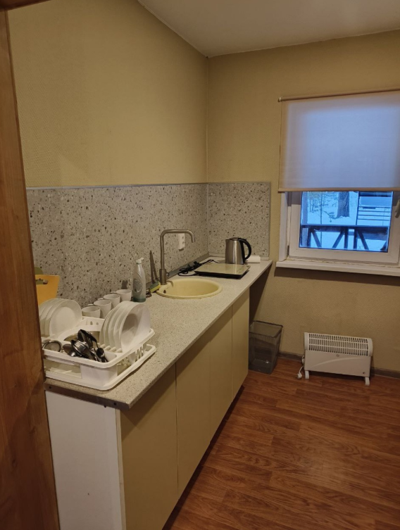 - кухня оборудована всеми необходимыми принадлежностями: электрической плиткой, холодильником, микроволновой печью, электрочайником;