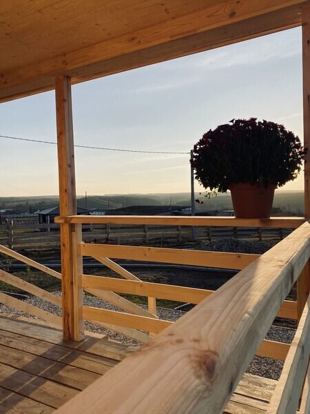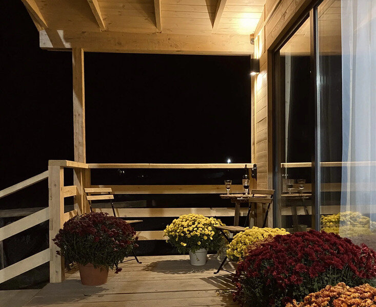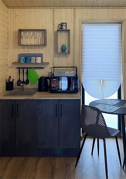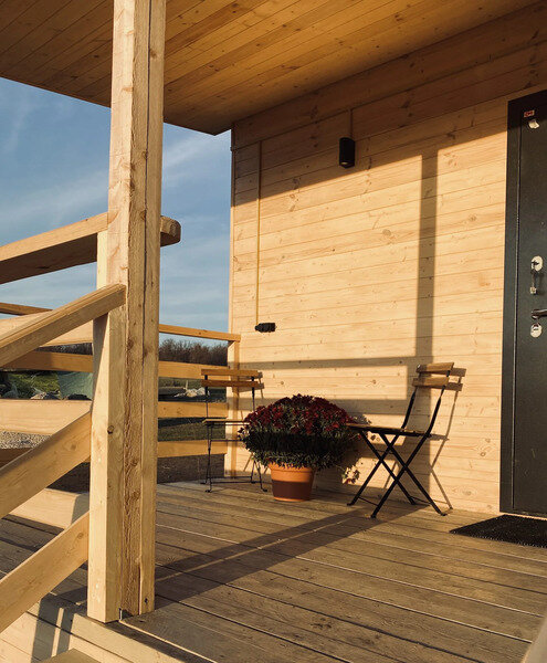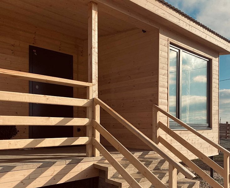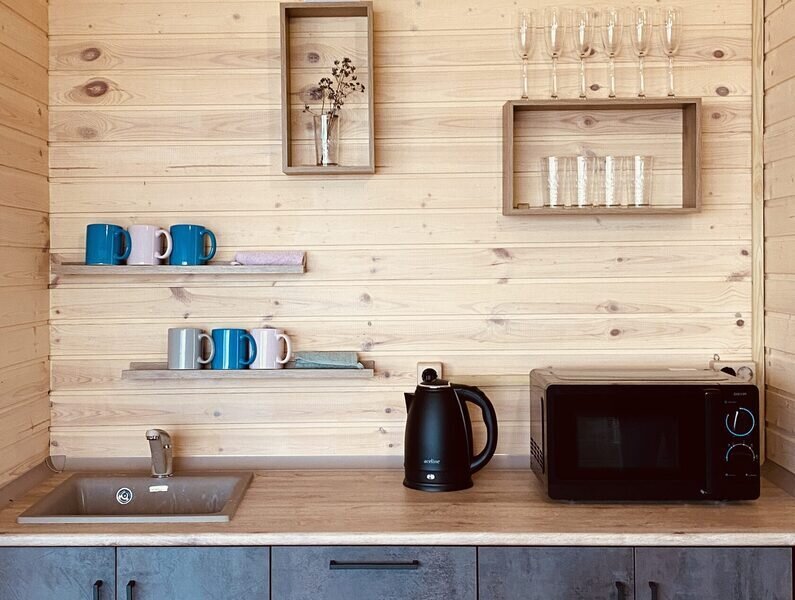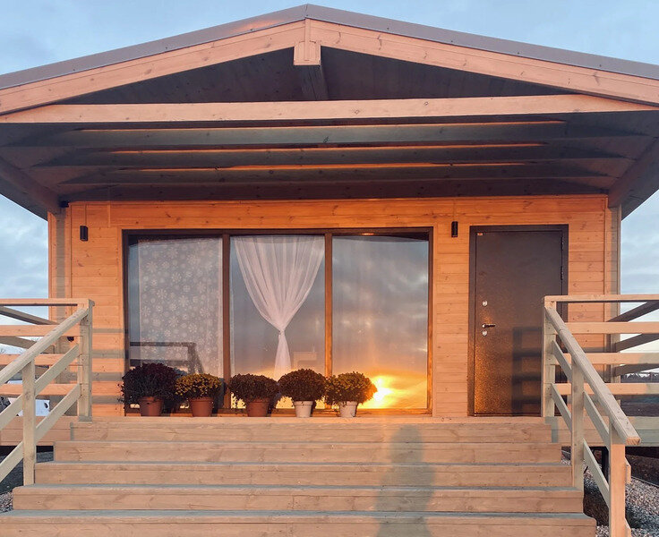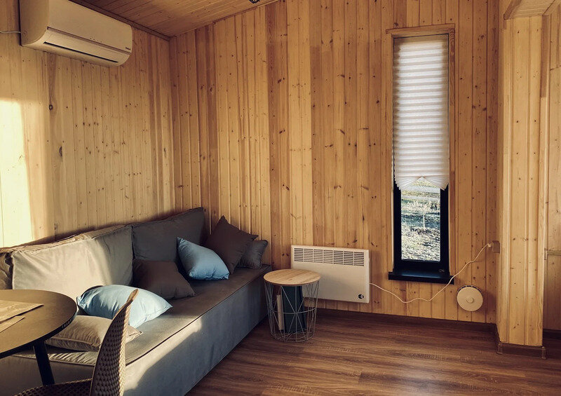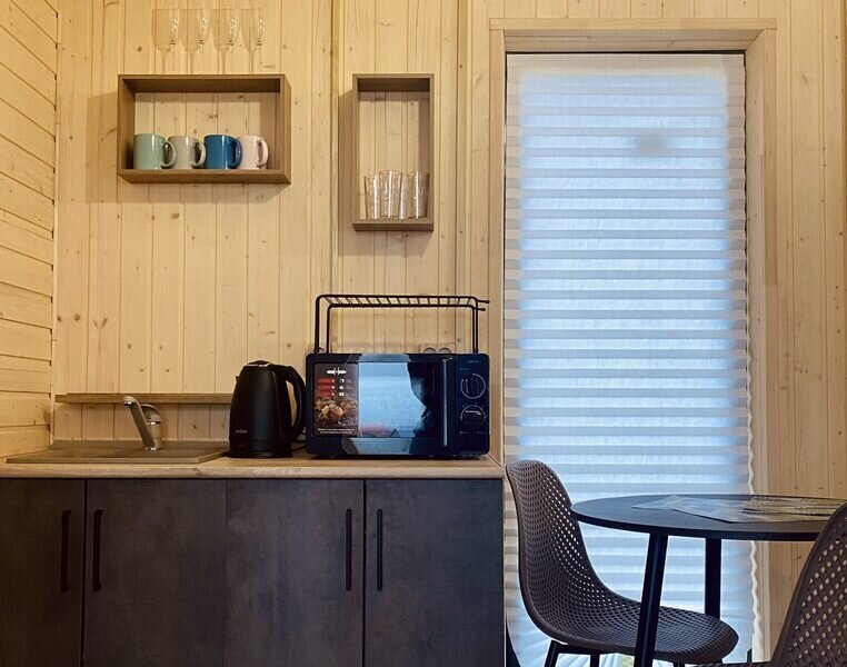 В домах оборудована мини-кухня с необходимой техникой, удобная мебель, веранда и панорамные окна.