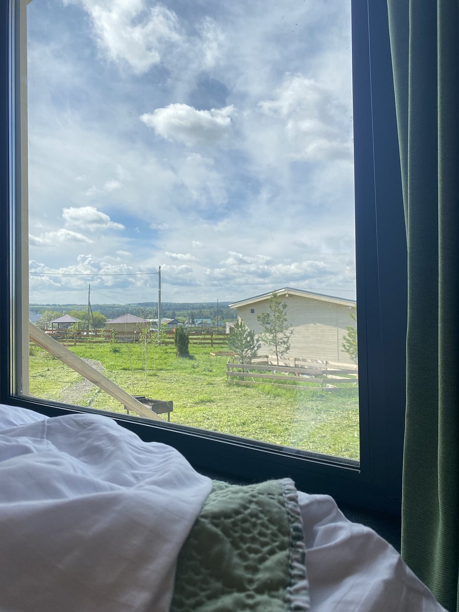 Для гостей оборудована уютная комната отдыха с традиционным шикарным видом на окрестные просторы. Банный текстиль и ароматный травяной чай входят в стоимость.