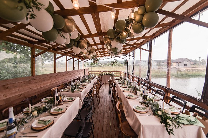 Обратите внимание на то, что можно сделать настил на открытом пространстве и разместить большее количество человек, фото смотрите в ленте, мебель на 35 человек мы вам предоставим с веранды.