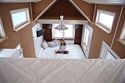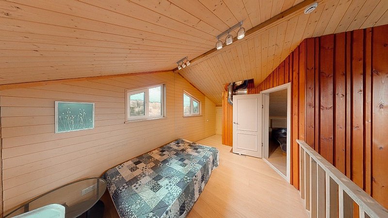 На втором этаже - две отдельных спальни с двуспальными кроватями и небольшая гостиная с рабочей зоной и кроватью 140 см. шириной.