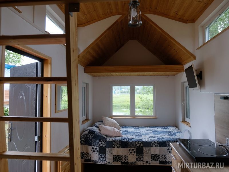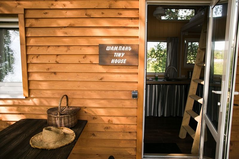 - TinyHouse, что в переводе означает крошечный дом, он уютный и продуман до мелочей.