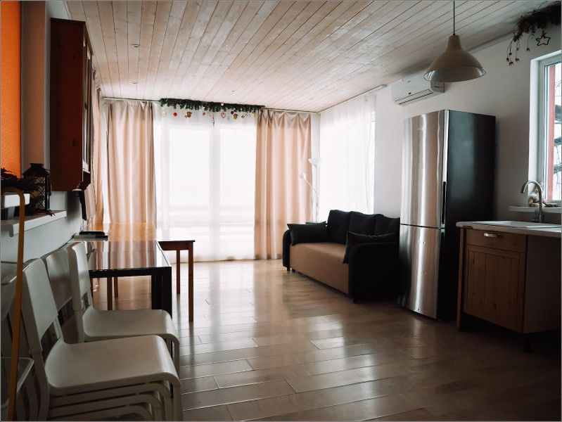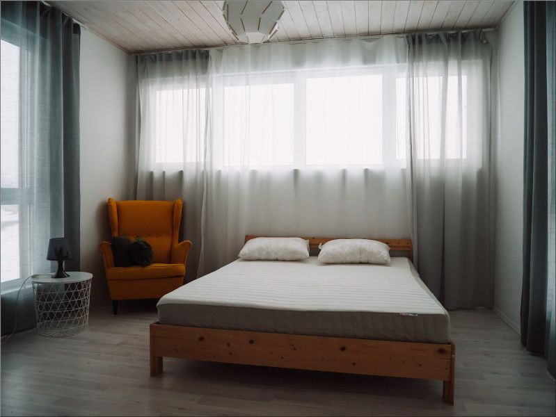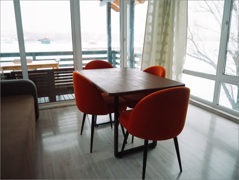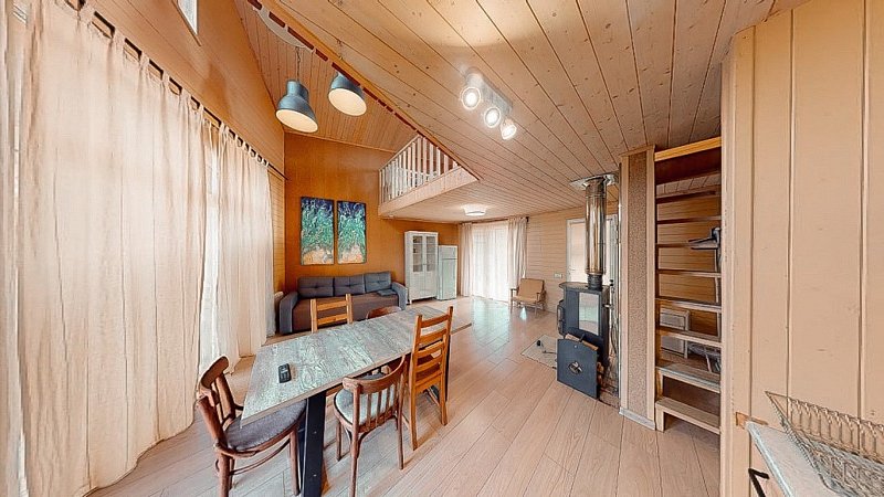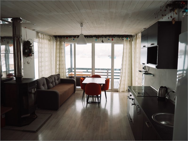 Дом отапливается камином, этого тепла хватает. Дрова входят в стоимость. Также в доме есть кондиционер для поддержания температуры на тепло зимой и охлаждение летом. В спальне на втором этаже стоит электрический обогреватель, но для того, чтобы тепло было во всём доме необходимо топить камин, полы в доме без подогрева, не забудьте захватить тёплые тапочки.