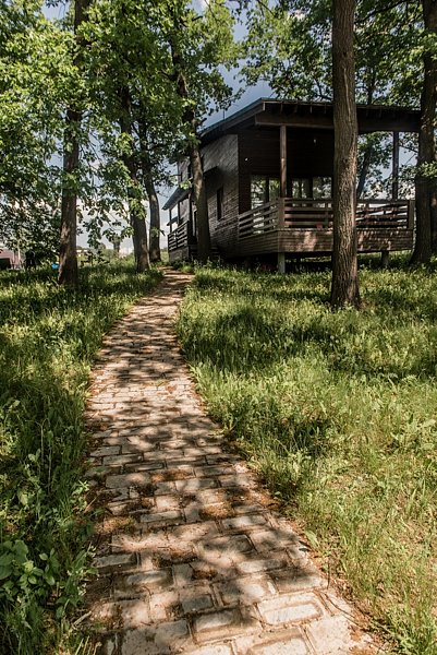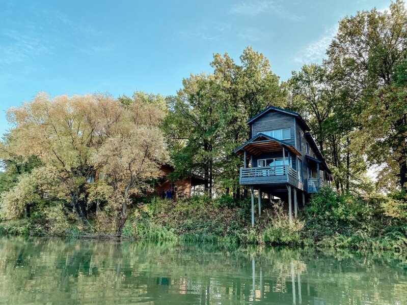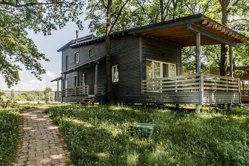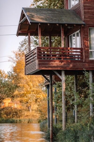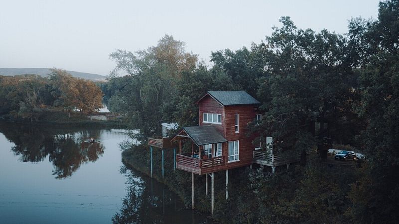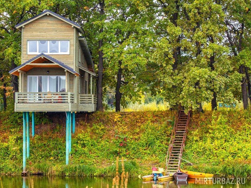 Уютный дом со всеми удобствами для комфортной жизни, расположенный в дубовом лесу и буквально повисший над рекой.
