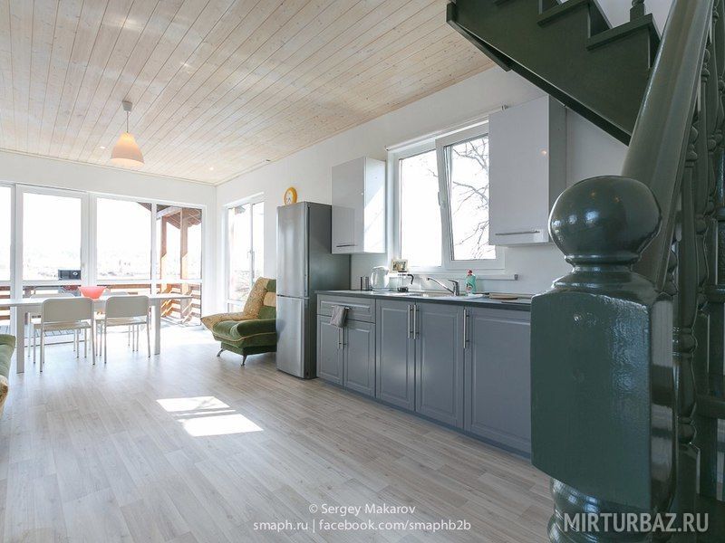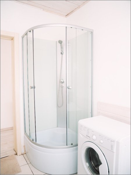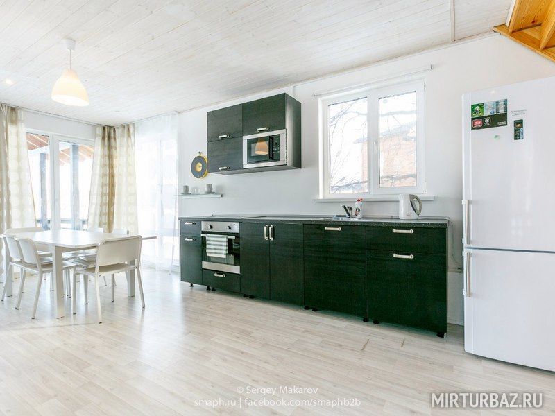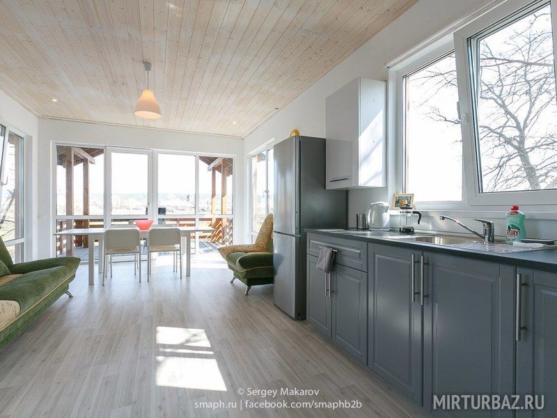 В доме есть все: цифровое телевидение, wi-fi, стиральная машина, душ, кухня с холодильником, плитой, микроволновой и духовкой. Кроме этого, кухня оборудована посудомоечной машиной.