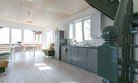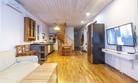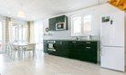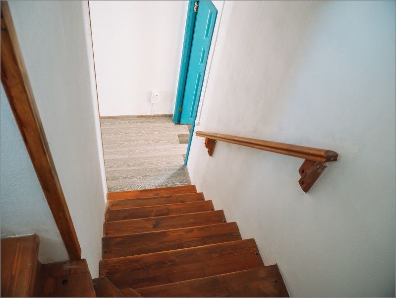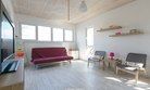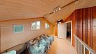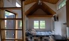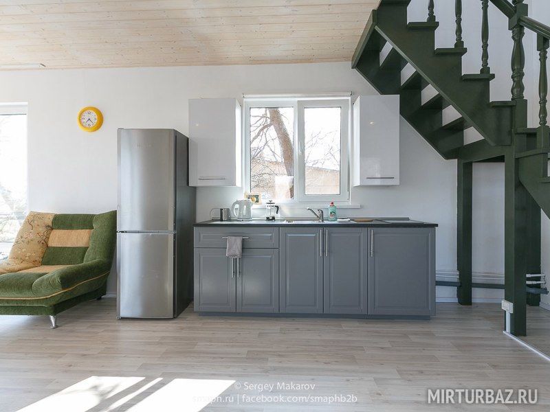 Первый этаж - спальня с двуспальной кроватью 160 см шириной, кухня с выходом на открытую террасу и гостиной с диваном, где также могут расположиться два человека.